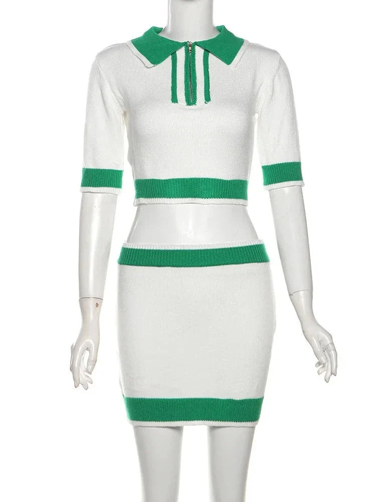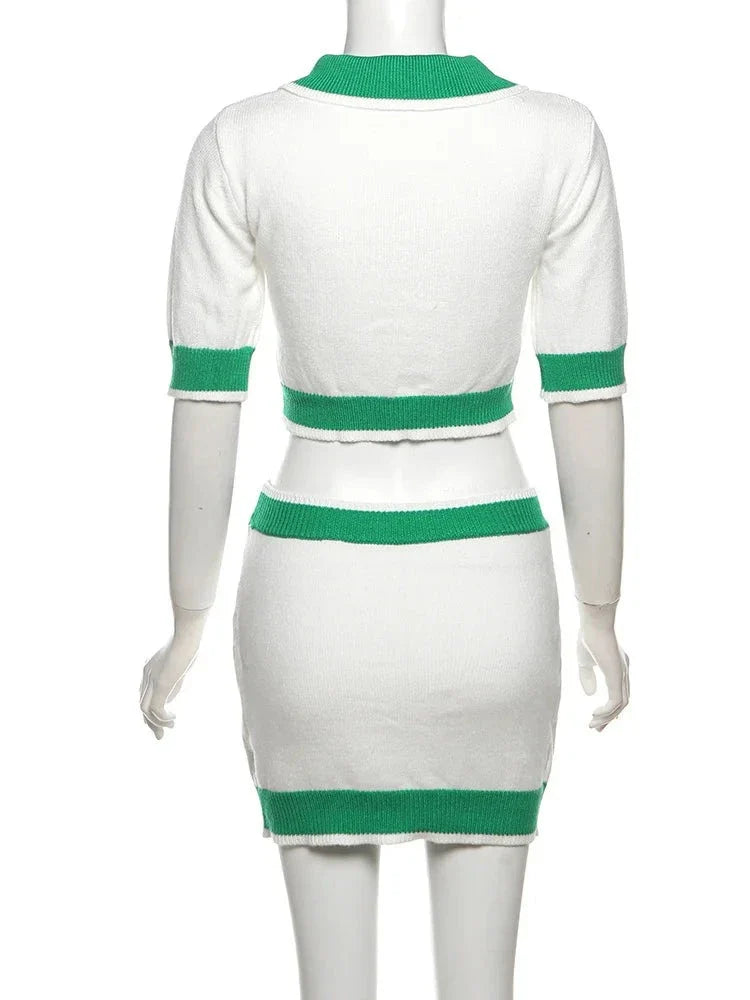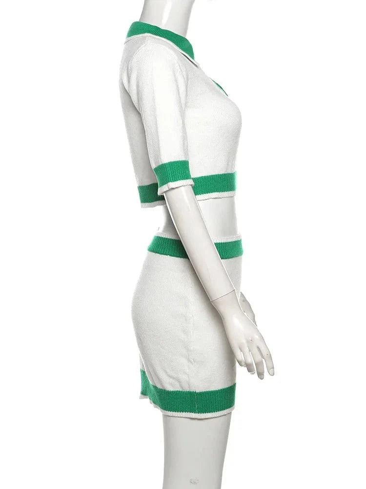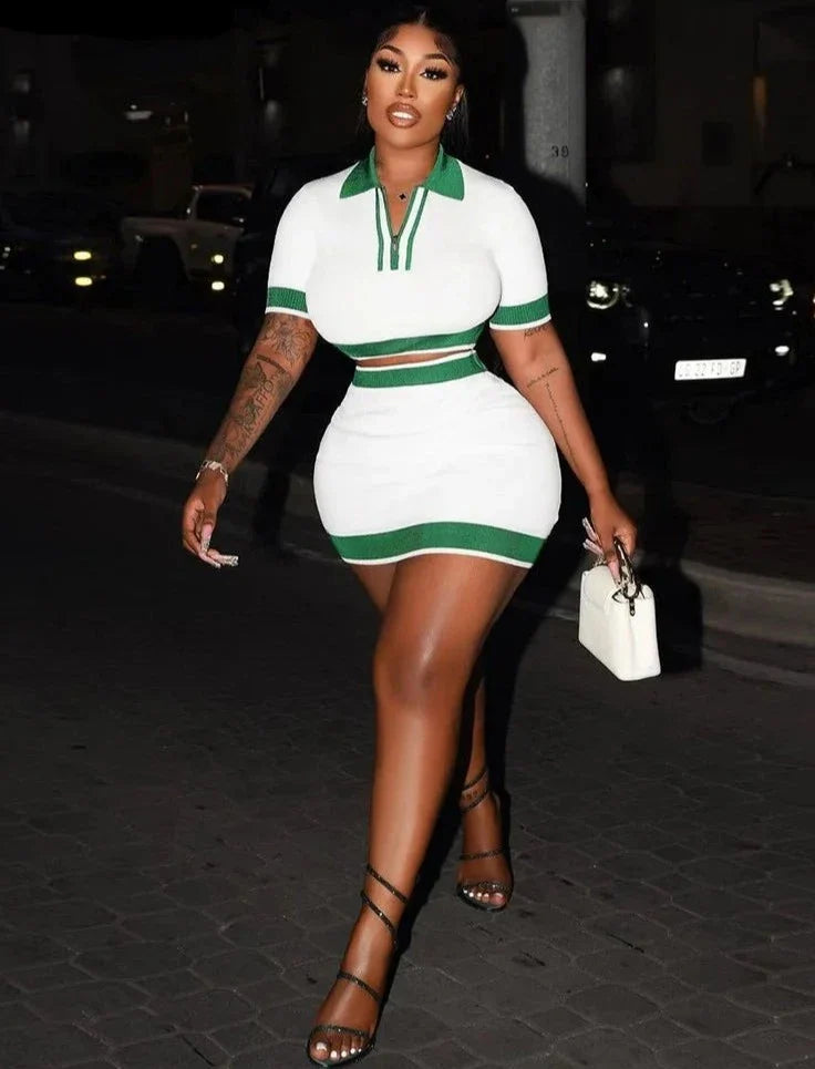 Your wardrobe wouldn't be complete without this Meant For You Green Collar Skirt Two Piece Set. you're sure to be earning all the style points. Brought to you in a green soft knitted material with a crop top collar design and a mini length high waisted skirt to match. this two-piece set just went straight to the top of your hit list! Style this matching set with some strappy heels and your favorite accessories to have all eyes on you.