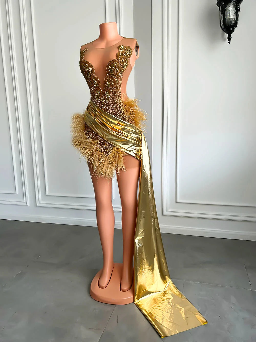 - please treat this dress gently since it's adorned with feathers; the occasional shedding of a single feather is to be expected.