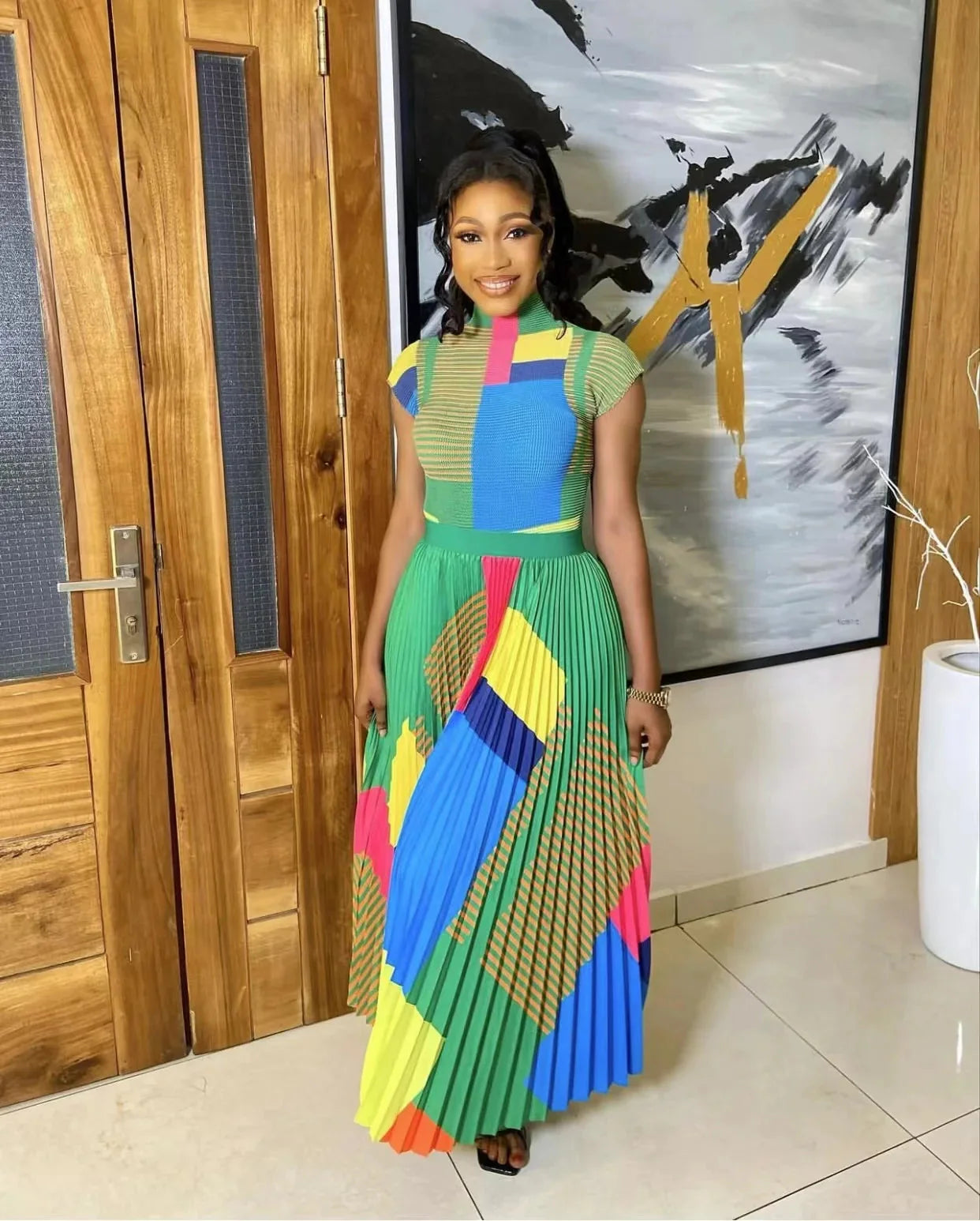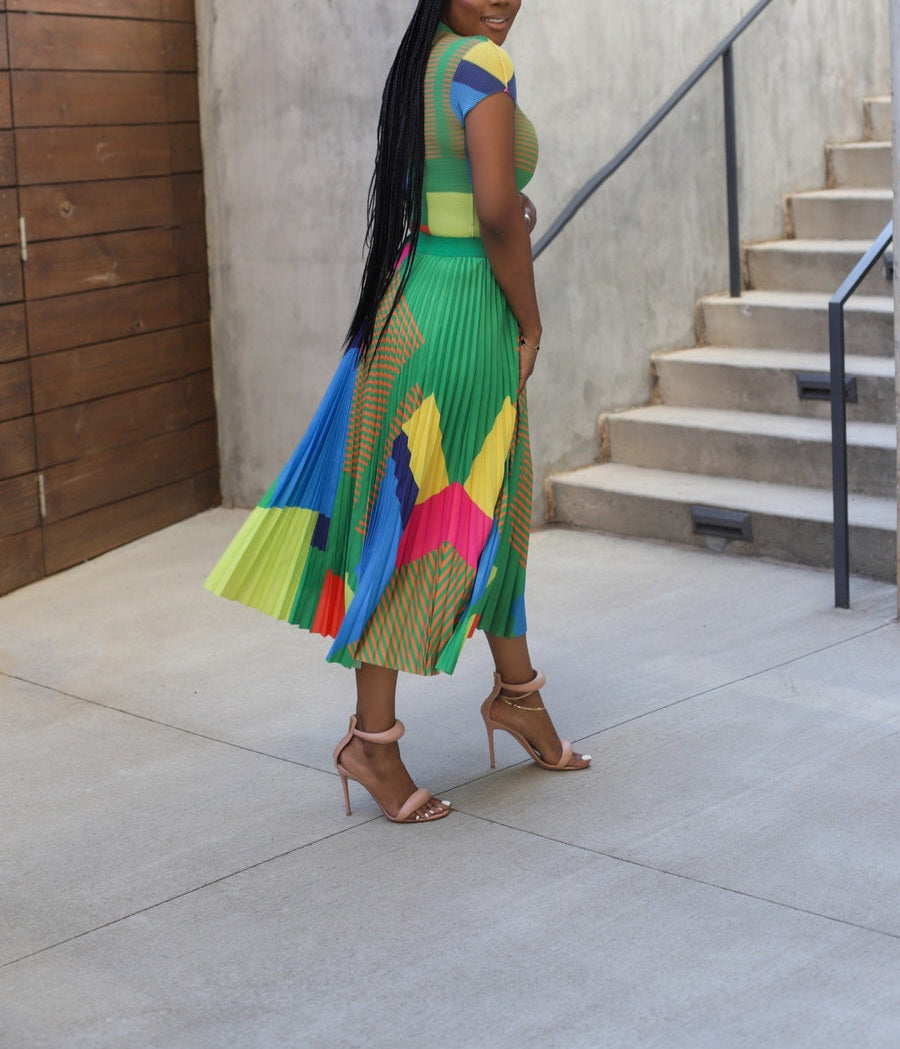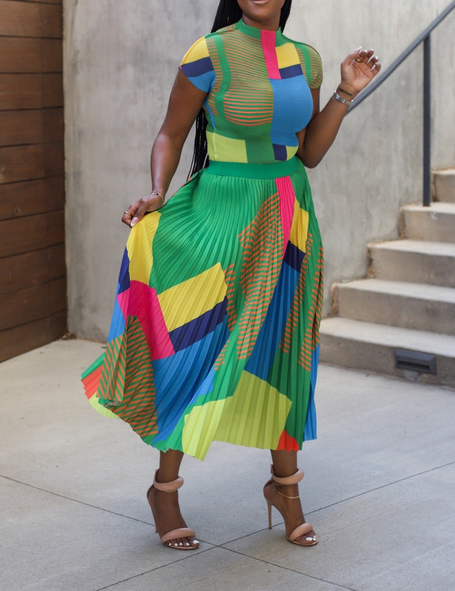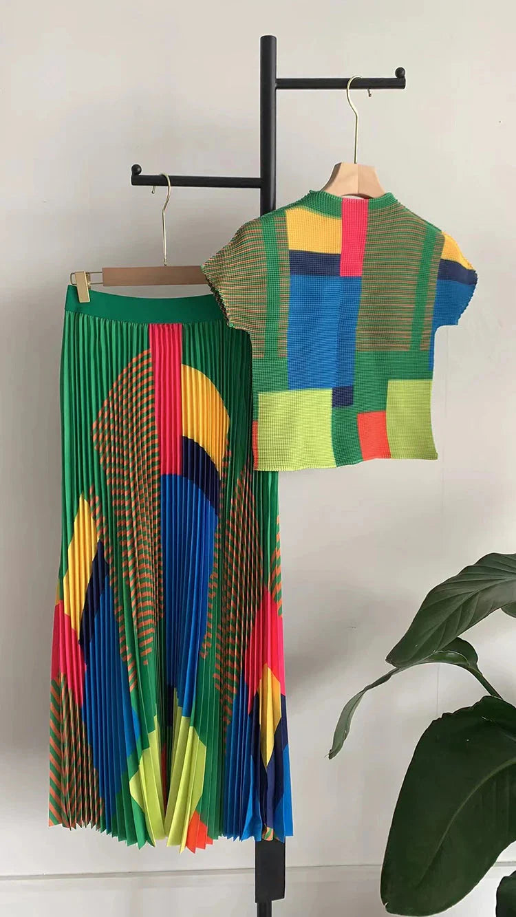 This classy and elegant Miyake Pleated Skirt Set is sure to turn heads. Crafted from high-quality fabrics. it's perfect for any special event. The pleated skirt and sophisticated top make this the perfect outfit for any occasion.