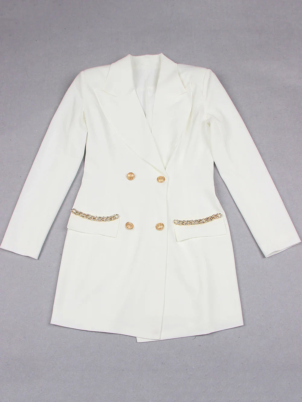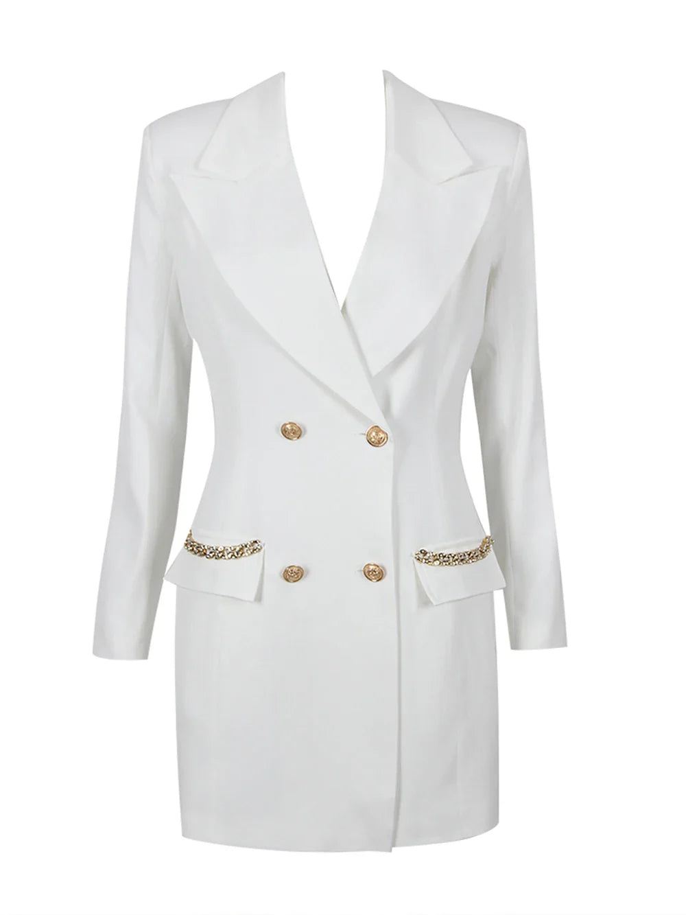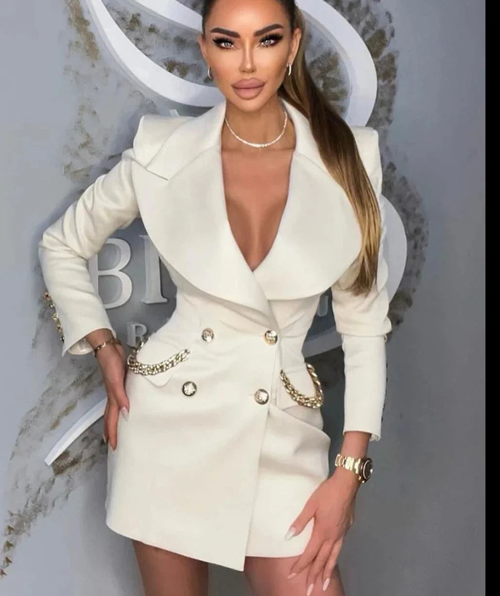 Transform your style with the Mona Chain Blazer Dress. This versatile piece can be worn as a blazer or dress. providing endless options for a sophisticated and elegant look. Elevate your wardrobe with this classy must-have.