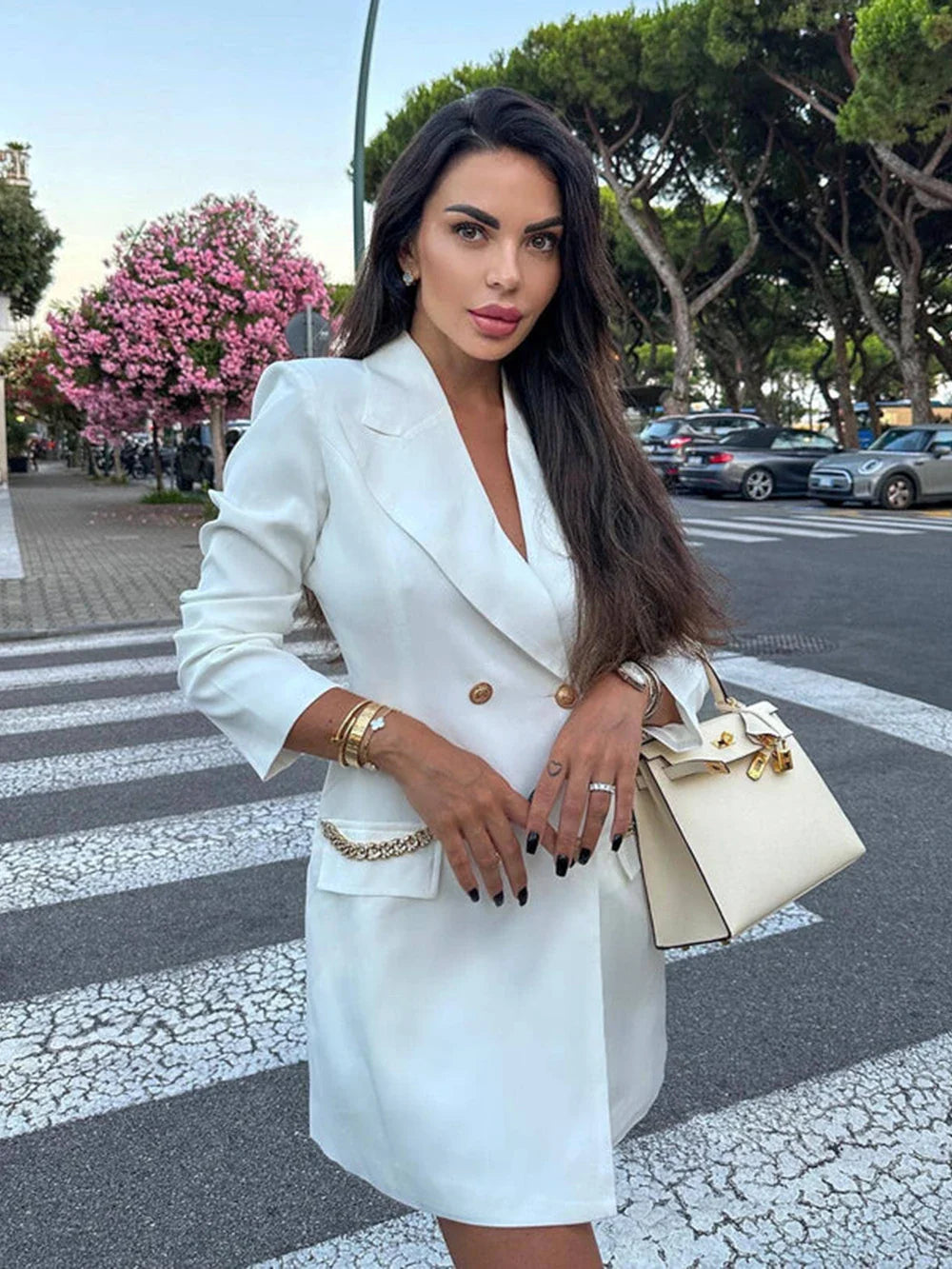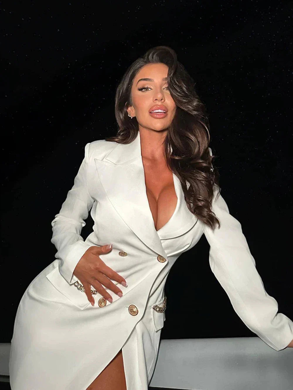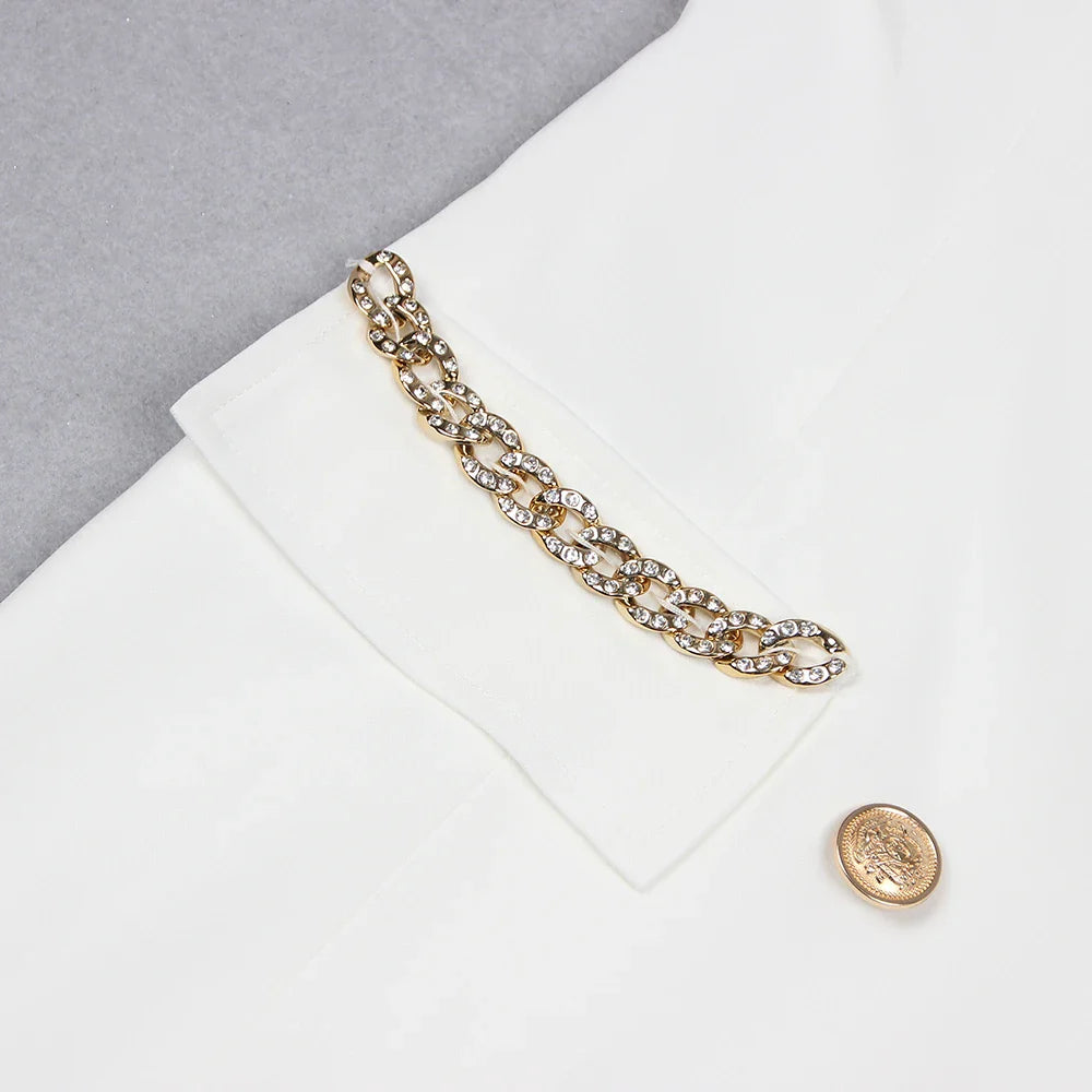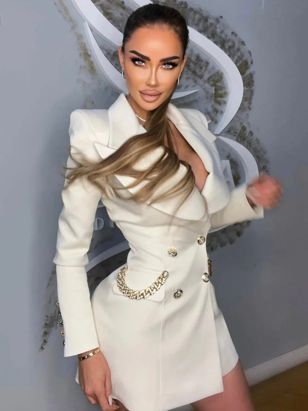 Transform your style with the Mona Chain Blazer Dress. This versatile piece can be worn as a blazer or dress. providing endless options for a sophisticated and elegant look. Elevate your wardrobe with this classy must-have.