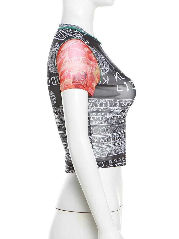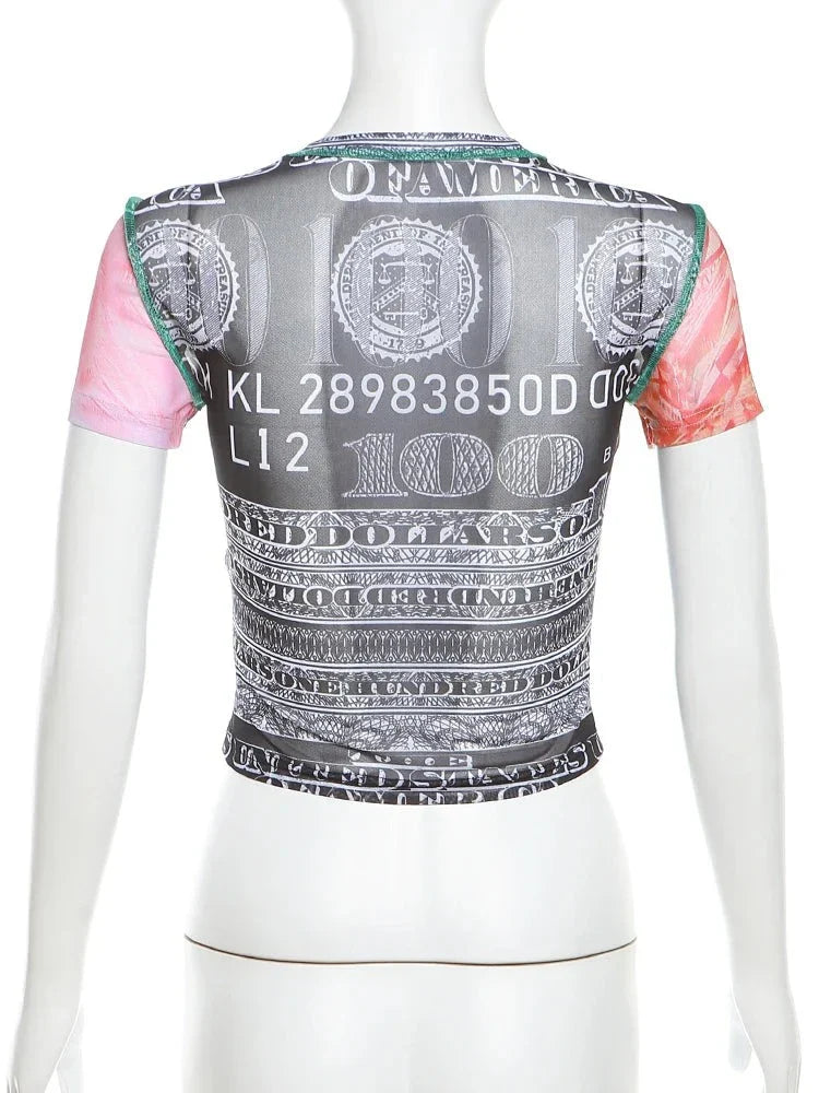 Give your wardrobe a seriously chic update with this Money On My Mind Mesh Crop Top. This top is made from a multi color mesh material with a printed design. you will be adding all the edge to your outfit of the day. Team with high waisted jeans and some clear heels to elevate the look even further.