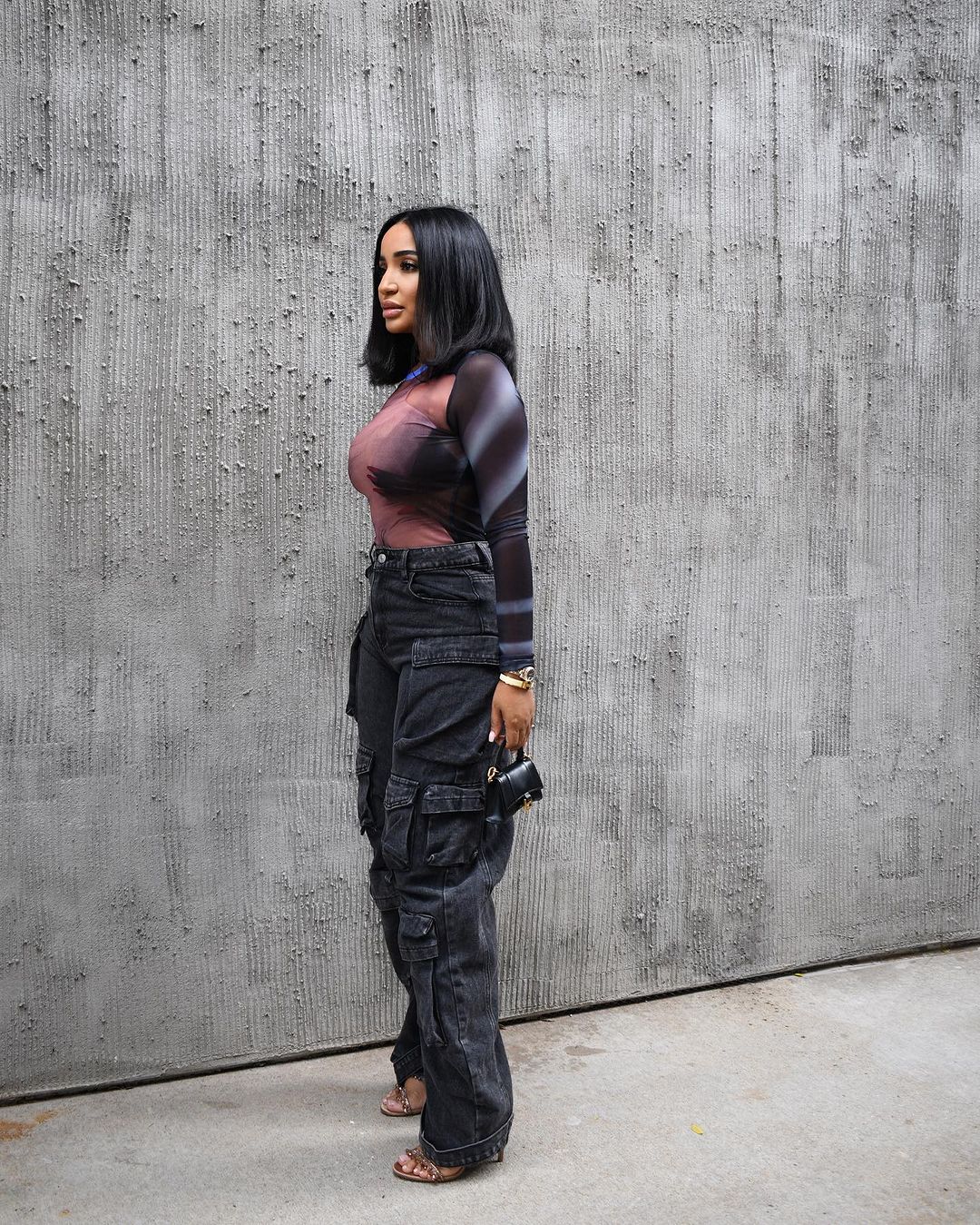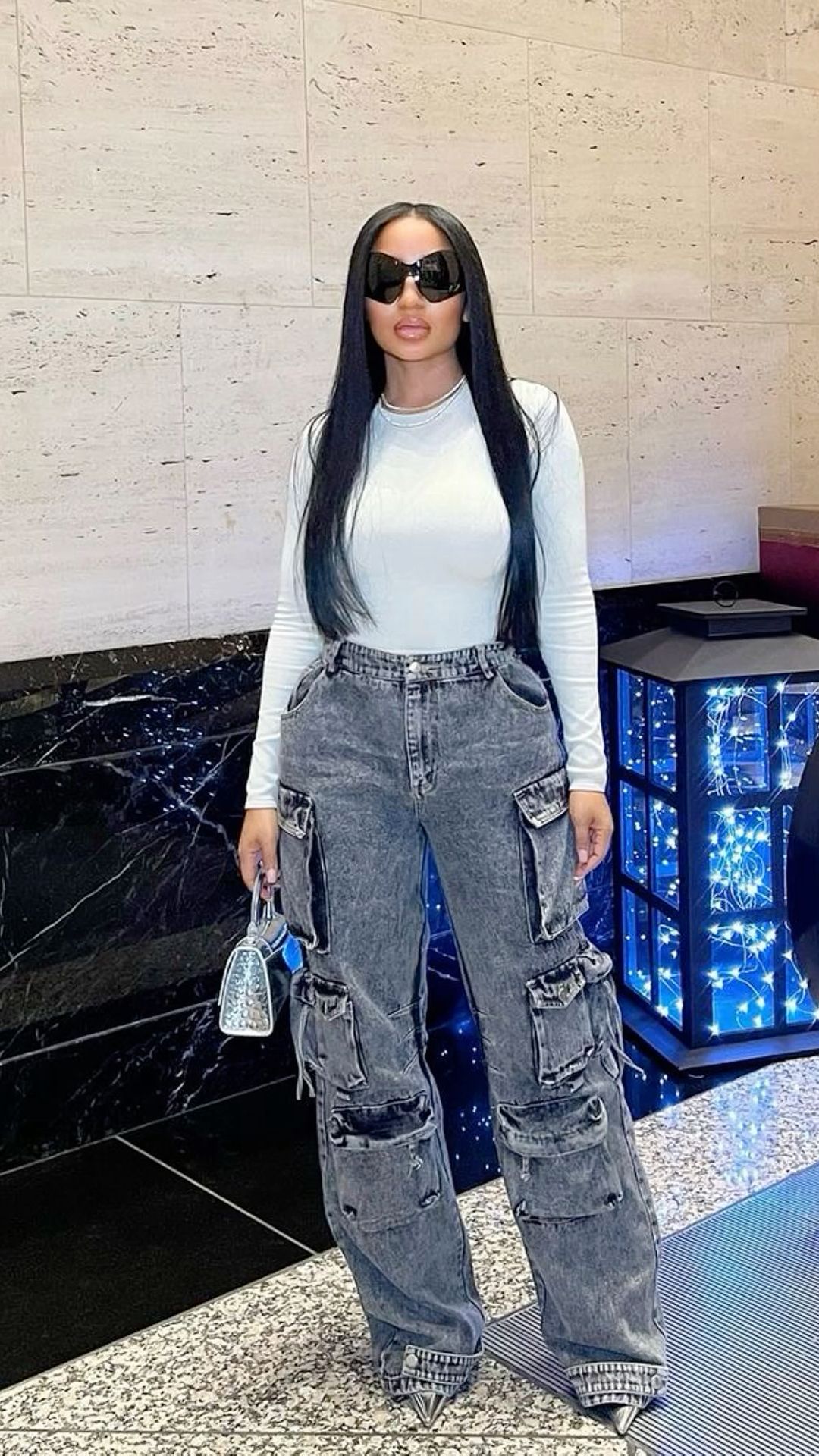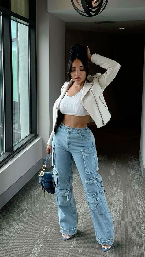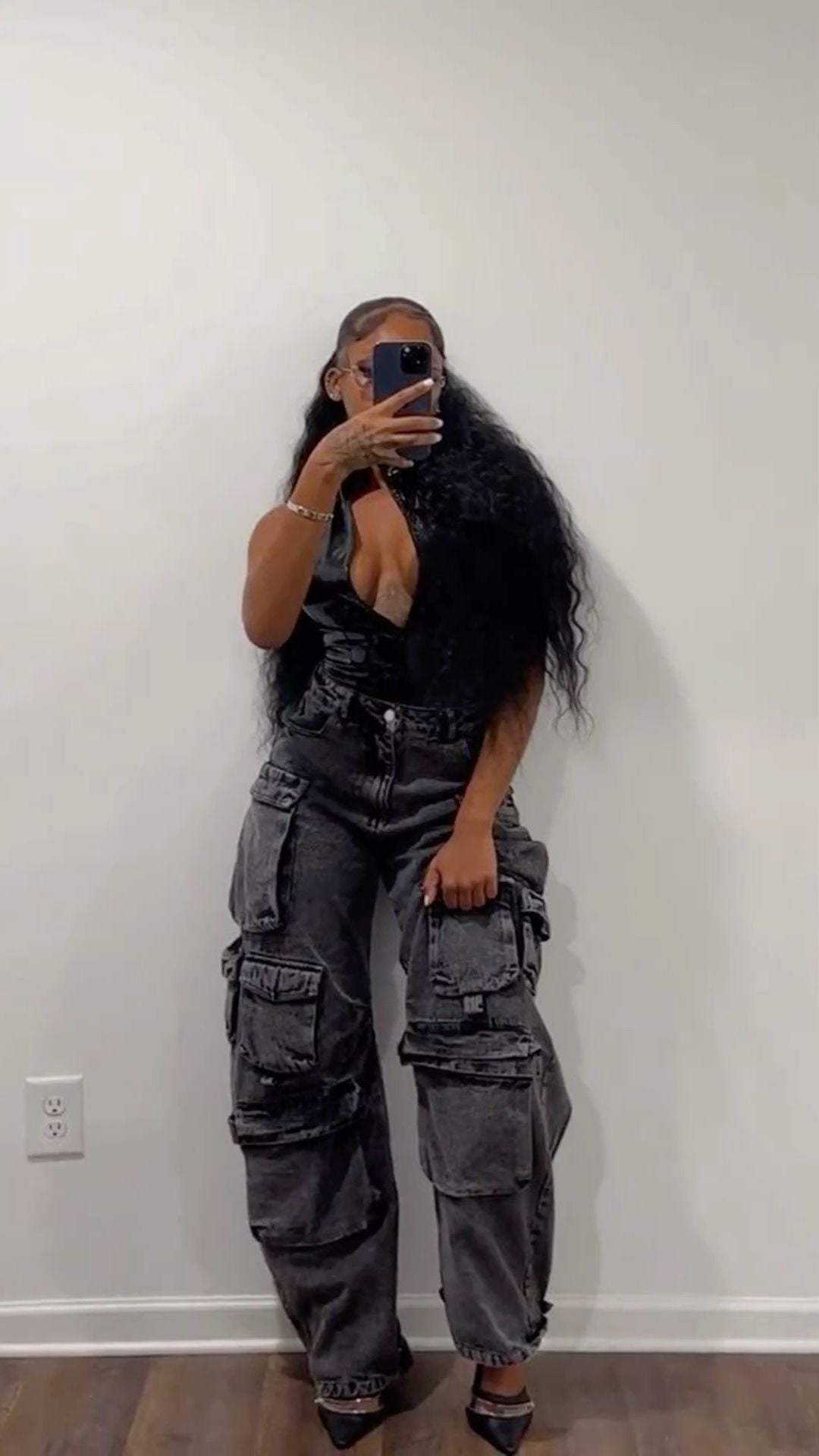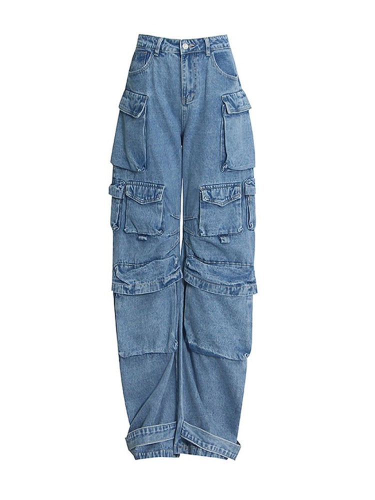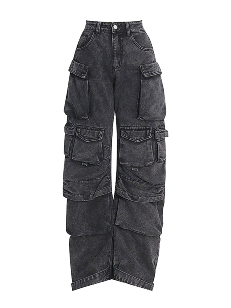 This stylish pair of cargo jeans feature multiple pockets offering ample storage for everyday items. Crafted from durable material. these jeans are designed to provide comfort and security on the go. Perfect for everyday wear. they offer a modern. professional look.