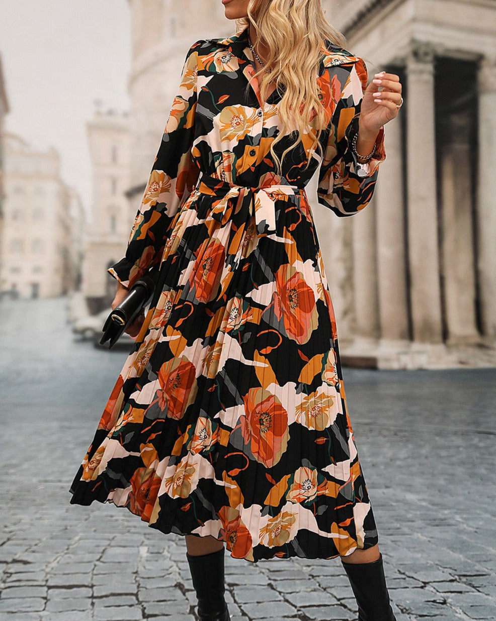A feminine floral print provides a bright accent to this midi dress. The waist tie cinches to your figure for a personalised finish. while pleats add a luxurious touch. An effortless button-up front contributes to a professional polish. 100% Polyester