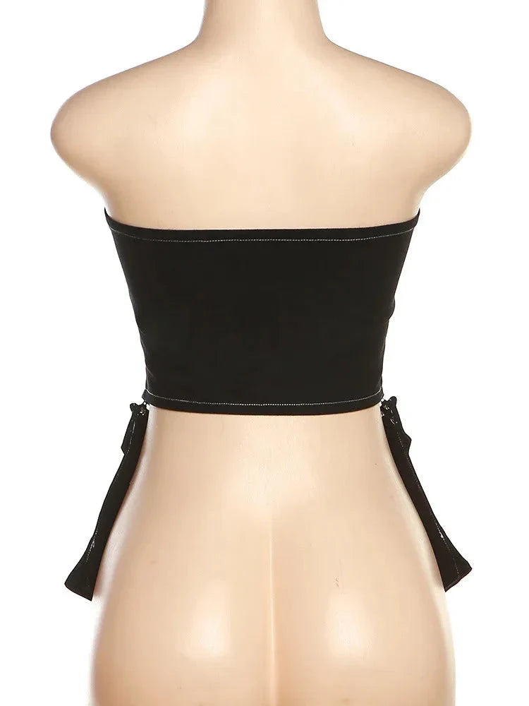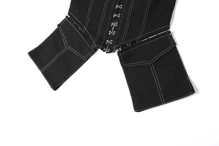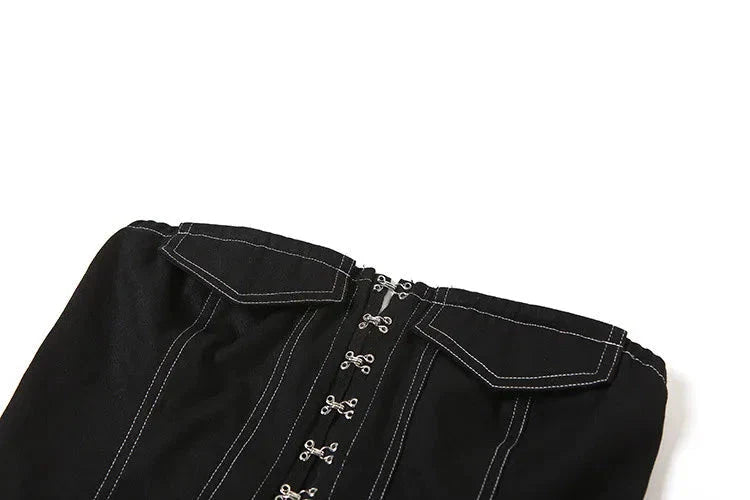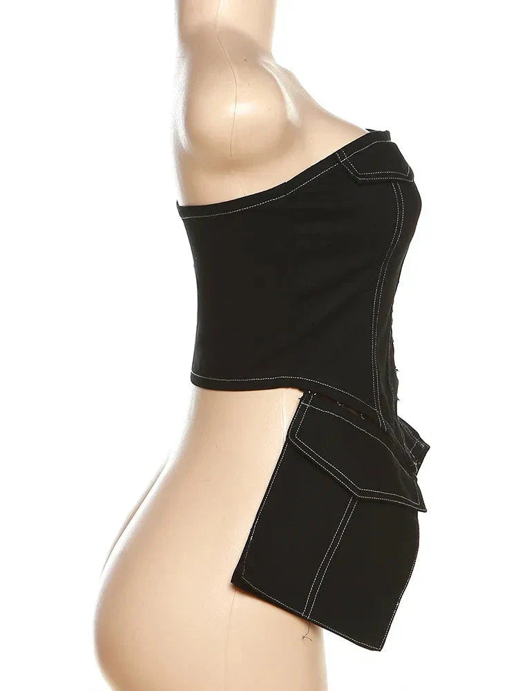 Get ready to earn some serious style points in this My Revenge Corset Top. Brought to you in a black hue woven material with a contrasting stitch design. cargo pockets. a bandeau neckline and hook and eye fastening. what more could you need? Style this corset top with your favorite pants and heels for a fierce weekend-worthy look that is sure to make heads turn.