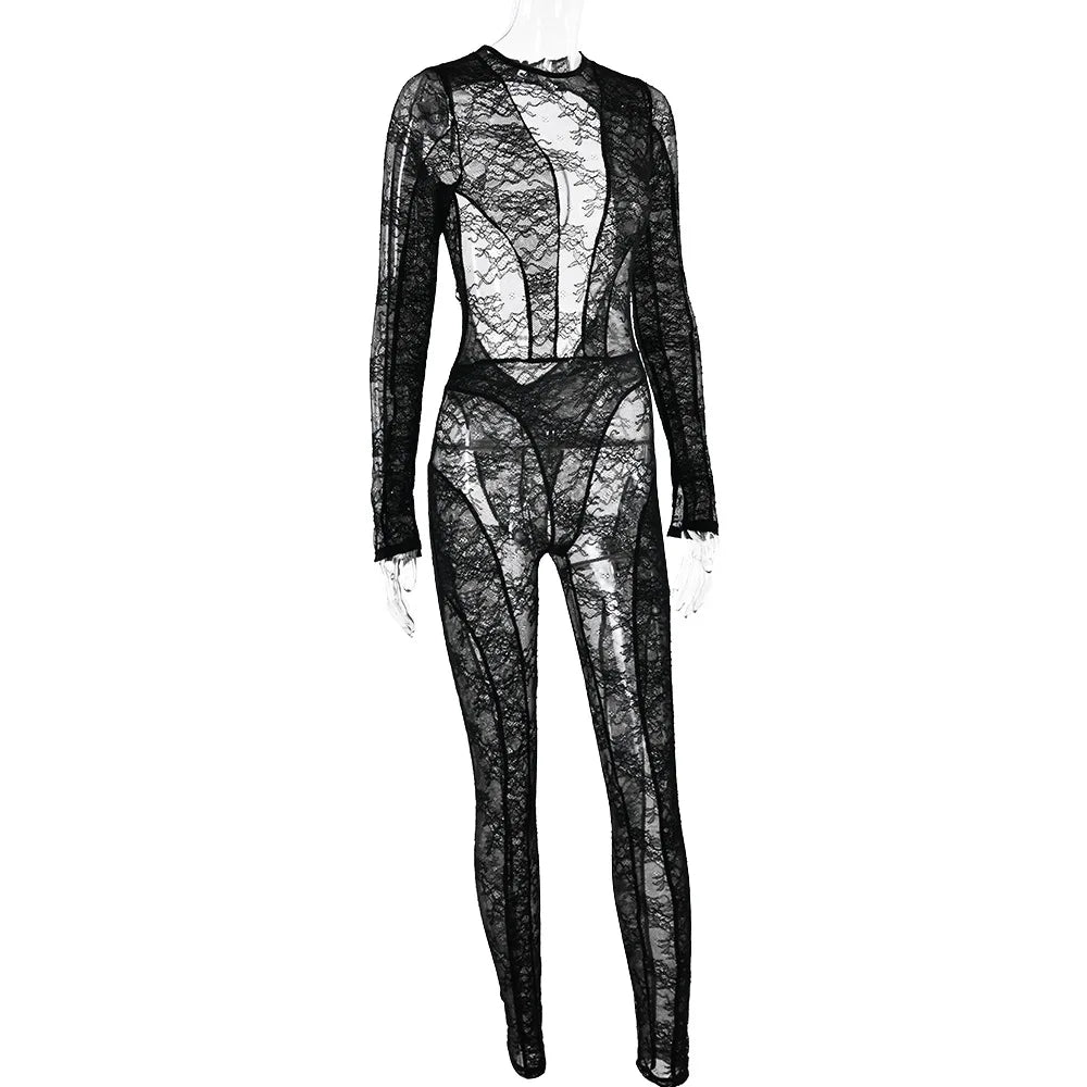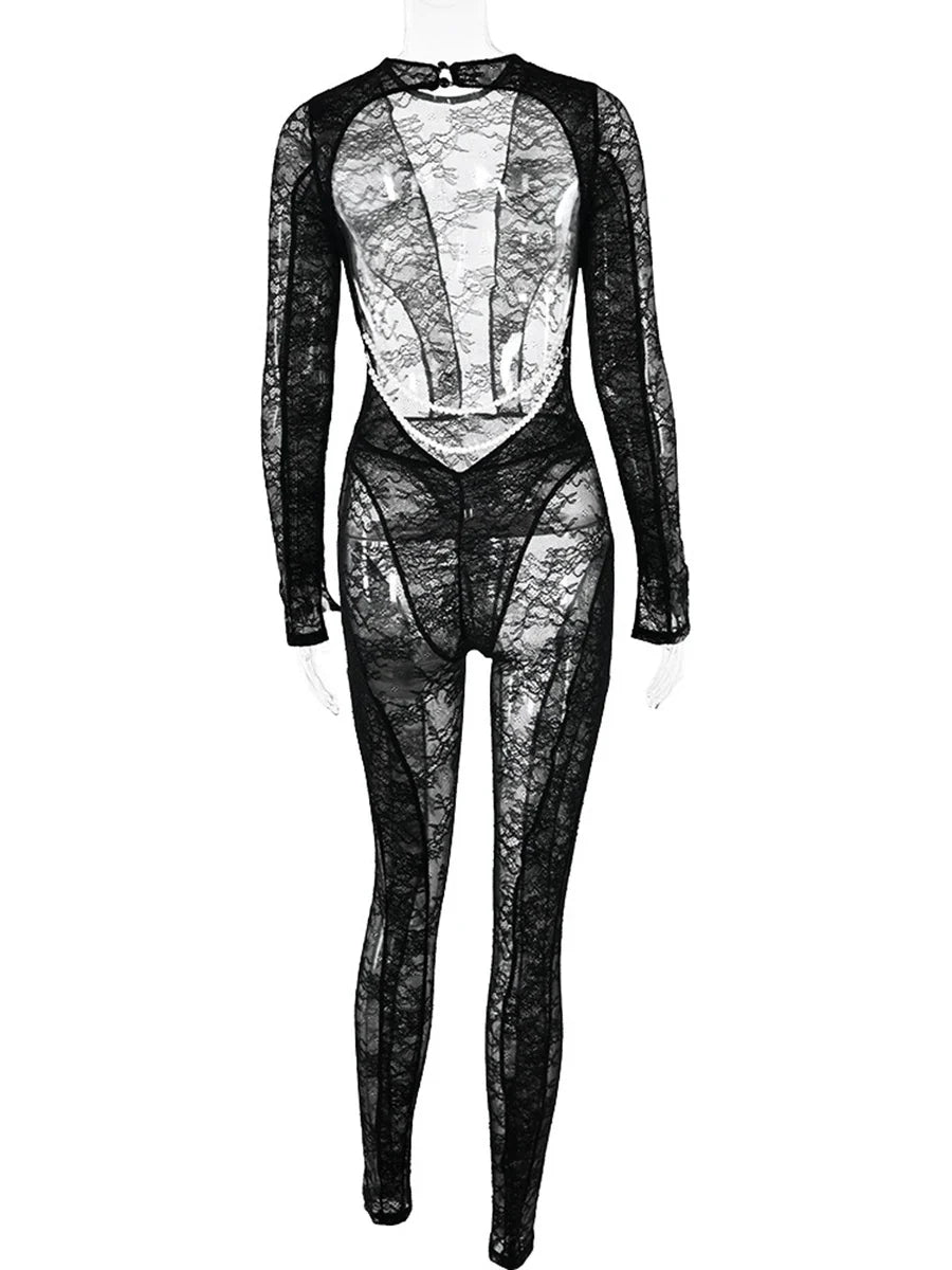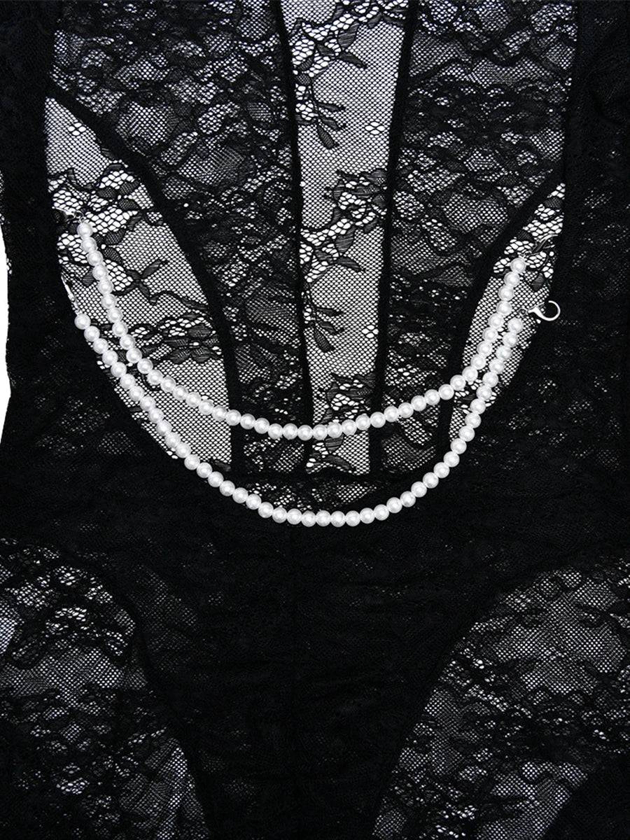Ideal for the fashion-forward. the Naisha Mesh Sheer Jumpsuit is sure to turn heads. This one-of-a-kind jumpsuit boasts open back detailing. accented with double layers of pearls for a touch of elegance. A must-have addition to any stylish wardrobe.