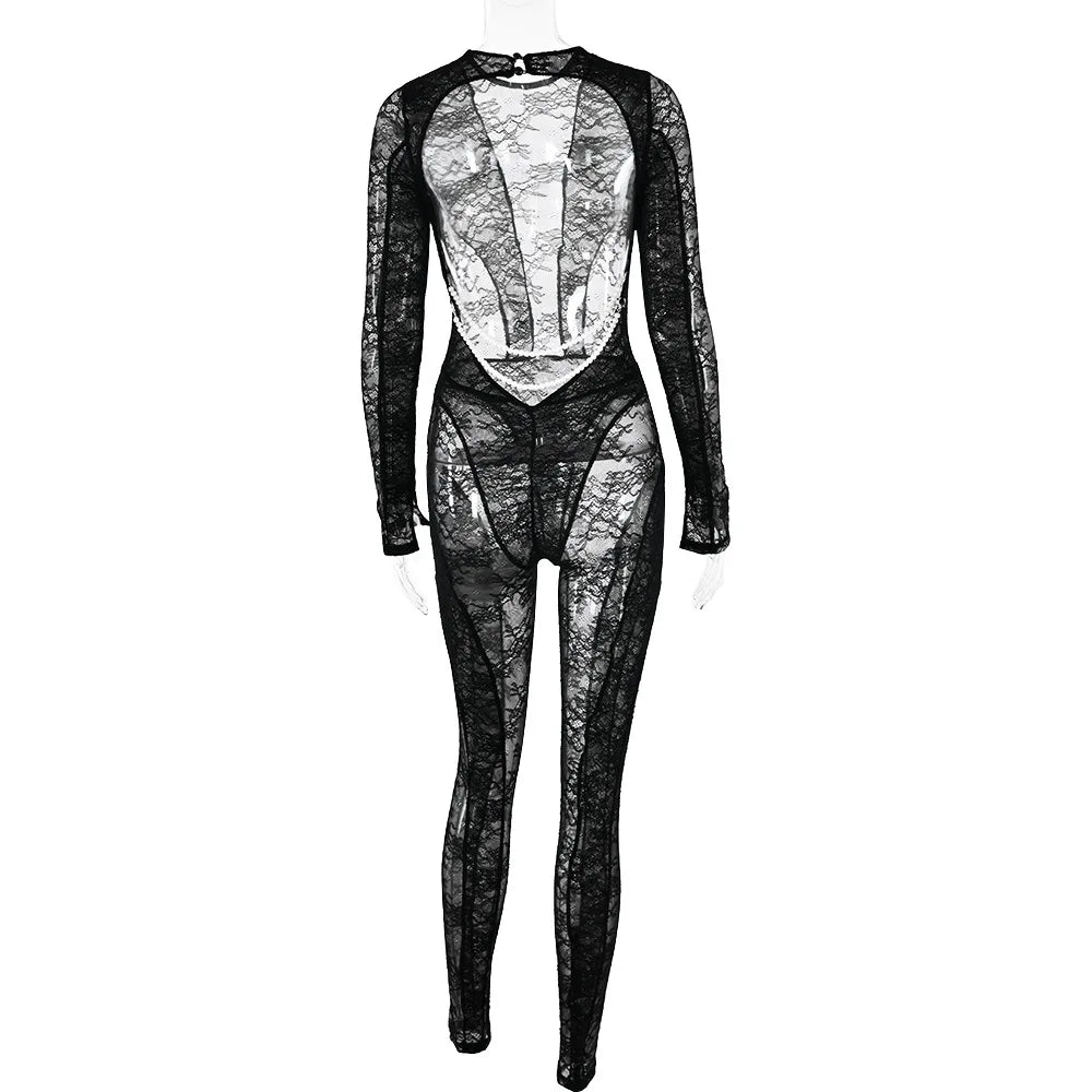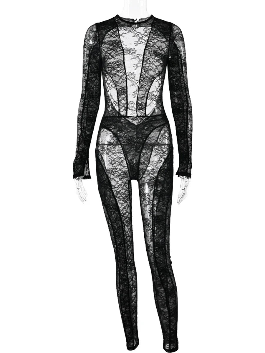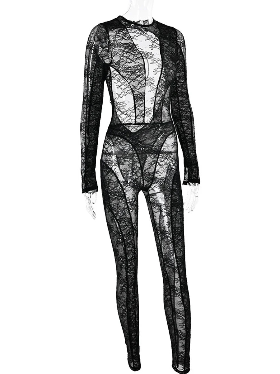 Ideal for the fashion-forward. the Naisha Mesh Sheer Jumpsuit is sure to turn heads. This one-of-a-kind jumpsuit boasts open back detailing. accented with double layers of pearls for a touch of elegance. A must-have addition to any stylish wardrobe.