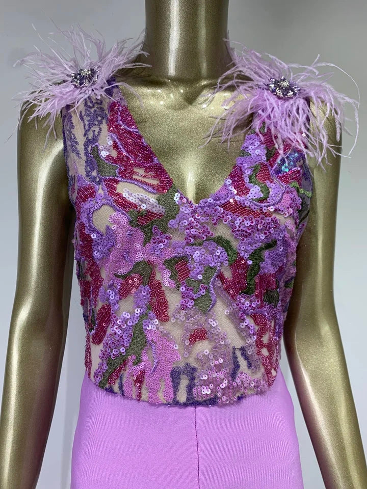 The Nessa Feathers Jumpsuit is a stunning addition to any wardrobe. Made with high quality materials. this jumpsuit exudes elegance and class. Perfect for formal occasions. it is sure to make you stand out in style.