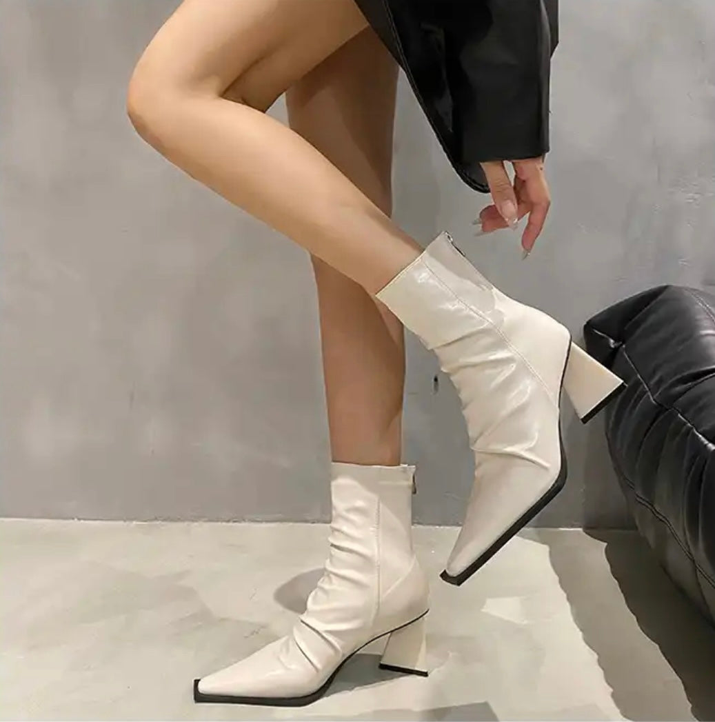 These On One Condition Ankle Boot Heels are an essential for your everyday wardrobe. Featuring a PU leather material. a pointed toe style. and a zip fastening closure with a block heel design. we are obsessed!