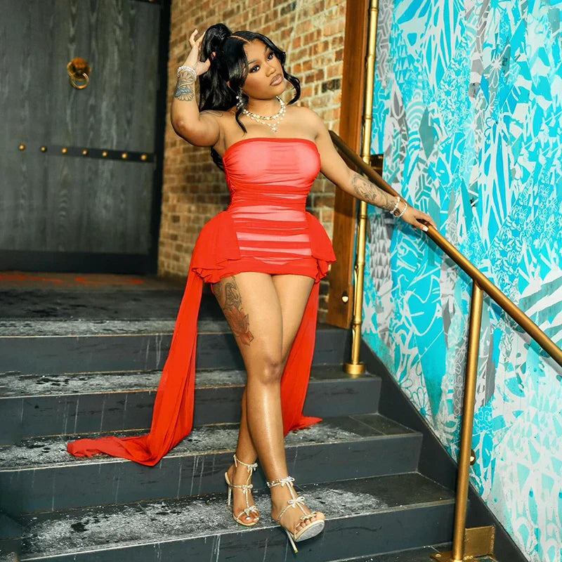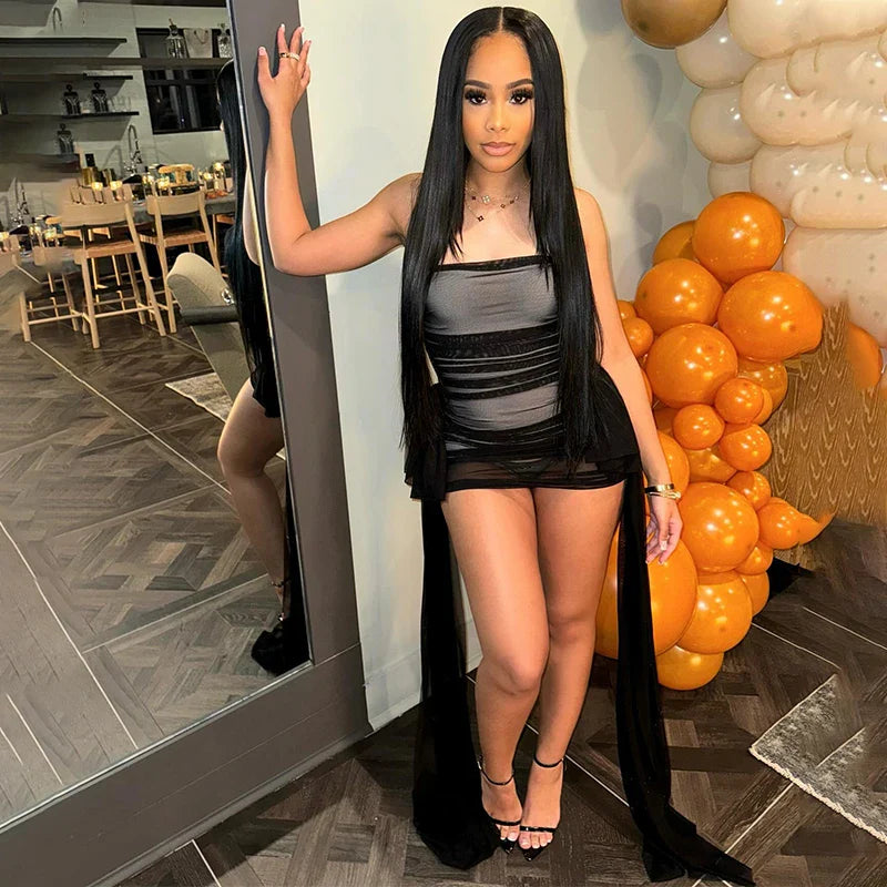 Consider this On Your Mind Sheer Strapless Dress your introduction to after-dark sophistication. Crafted from a considered mesh material. this bodycon dress offers a masterclass in subtle detailing. The side tassels elevates the minimalist silhouette. lending an artful touch to the streamlined design. Enhance the inherent elegance with delicate gold hoops from our jewelry collection for a considered evening look.