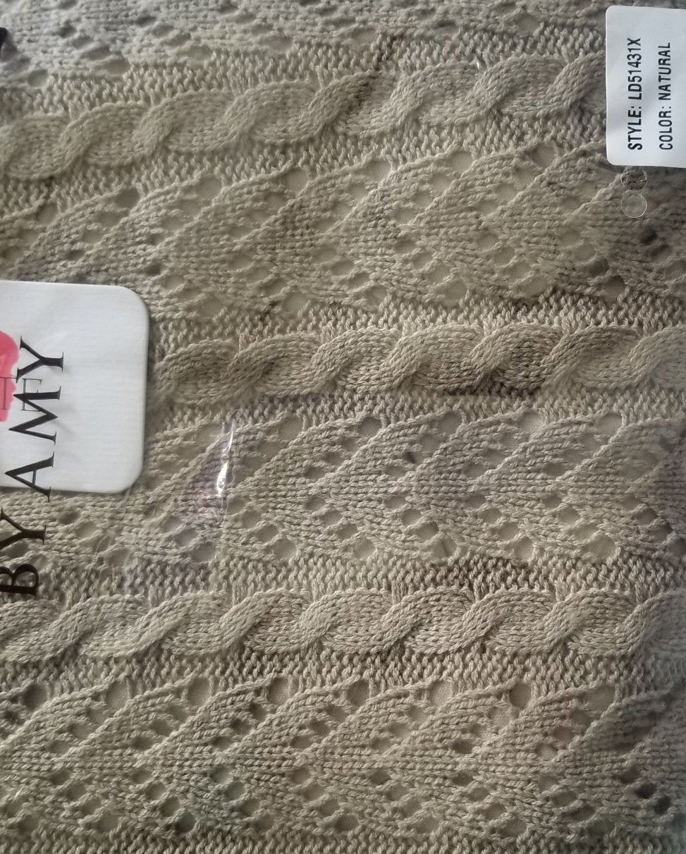 This Crochet Cable Knit And Chevron Pattern Maxi Dress Features A One-Shoulder Long Sleeve. High-Low Side Detail Skirt. And A Removable Belt Silver-Tone Metal Hardware.