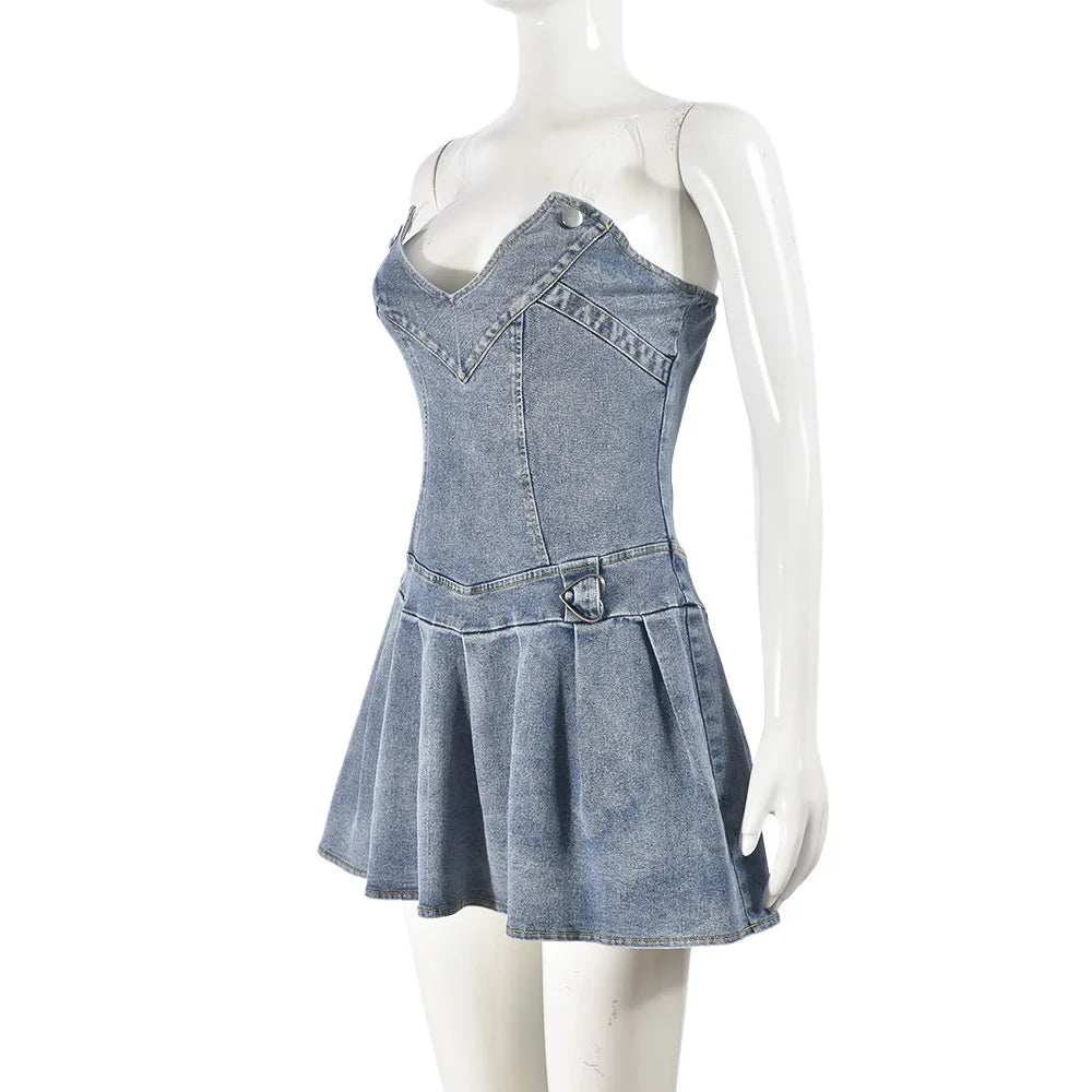 This Outside For The Night Strapless Mini Denim Dress is at the top of our new season wish list! Brought to you in a blue or black wash denim material with seam detailing and a flattering mini fit. you really can't go wrong. Style this mini dress with heels and statement accessories for a look that will have eyes on you all night long. or why not add fresh kicks for a fierce off-duty vibe?