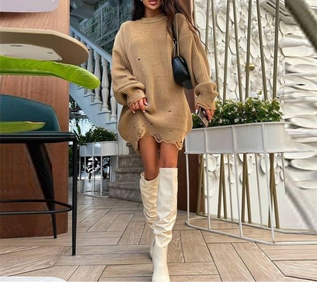 This Oversized Sweater Dress is perfect for the new season and beyond. Featuring a knitted material with an oversized fit and long sleeve. we're in love. Team with lace-up boots and your fave accessories for an effortlessly chilled vibe.
