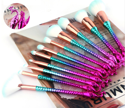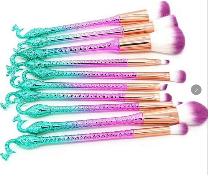 Peacock Mermaid Makeup Brush Set 10pcs. 6pcs
