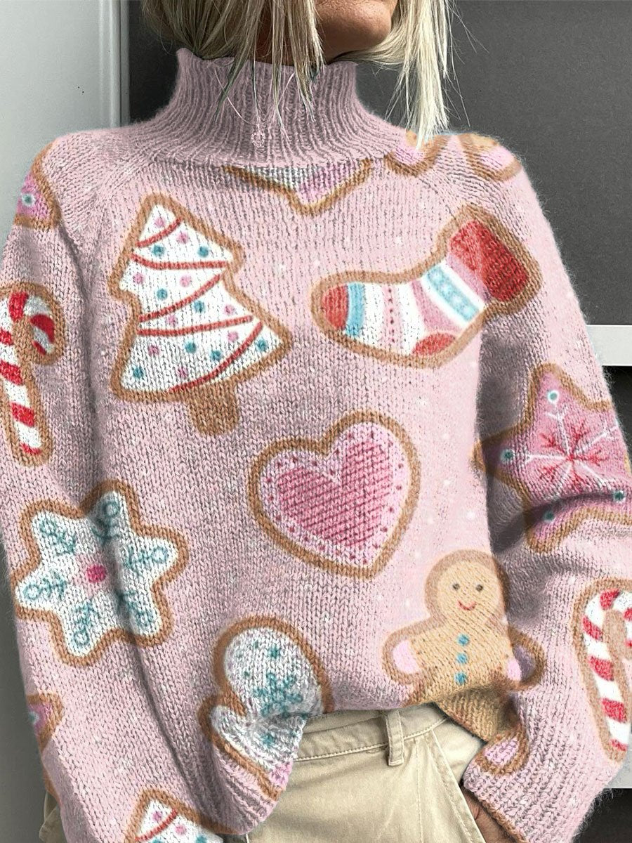 Pink Christmas Christmas Tree Pattern Art Print Knit Turtleneck Pullover Sweater