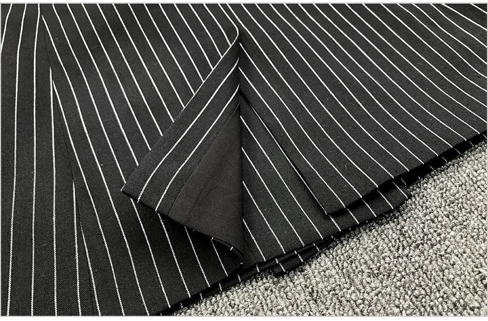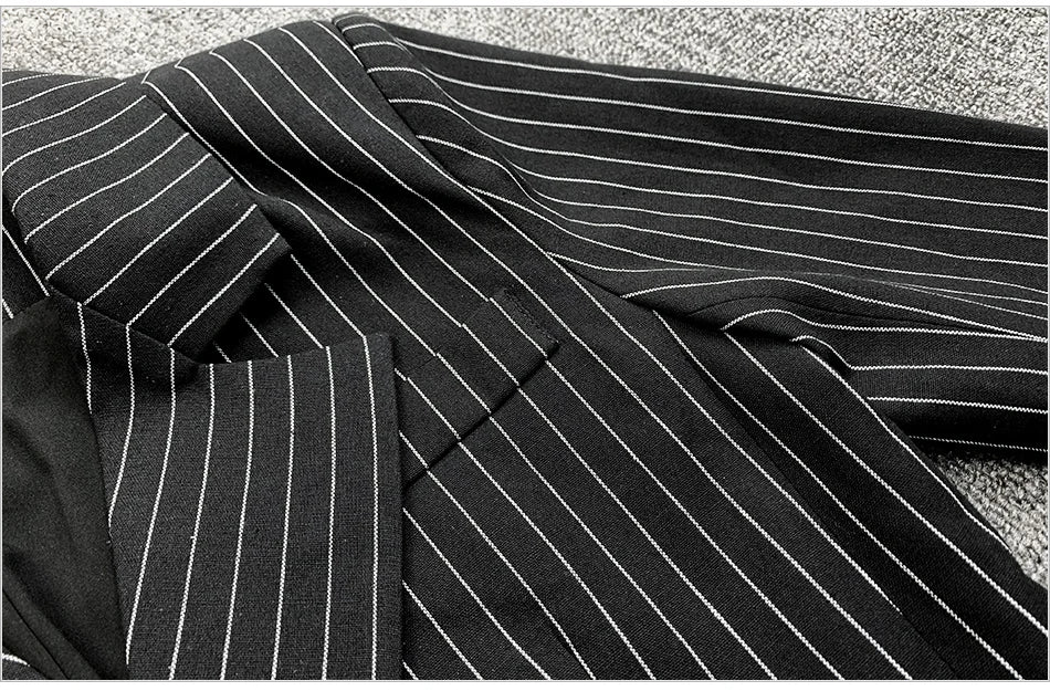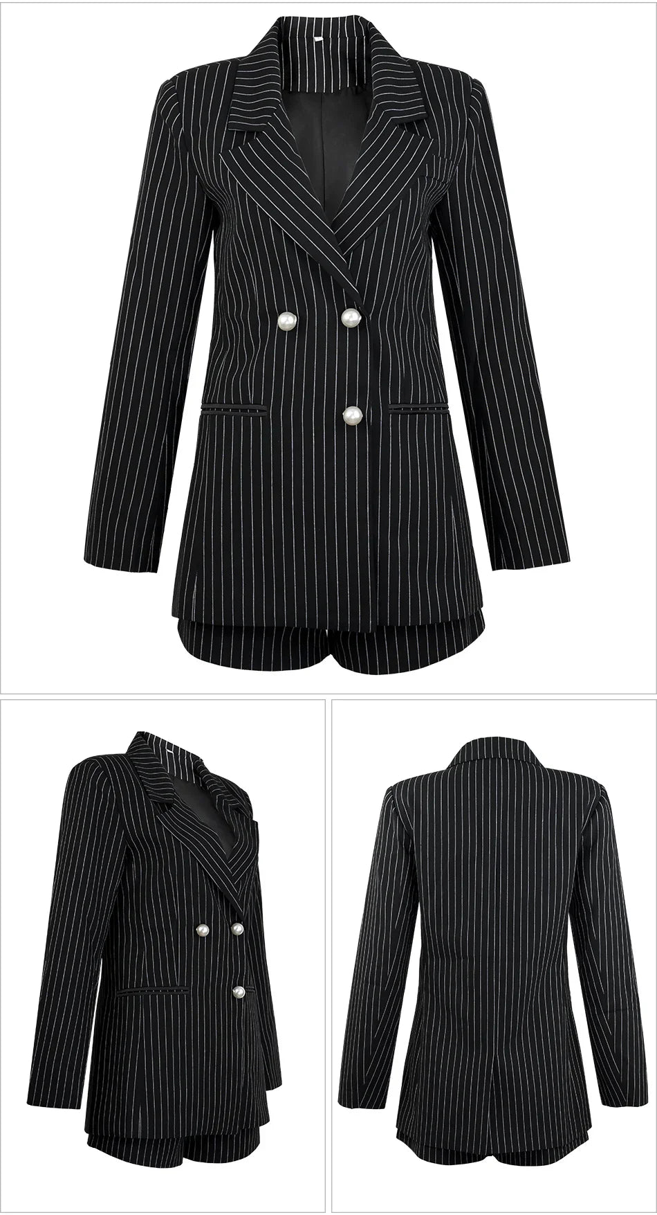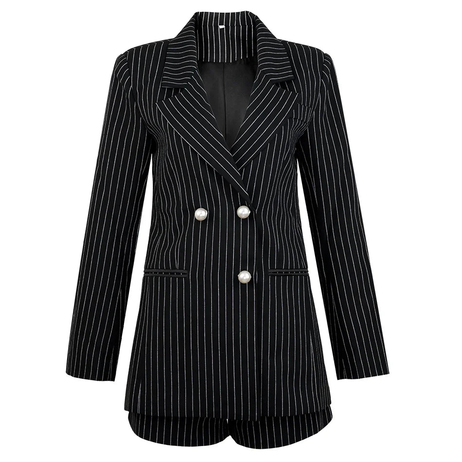 Elevate your style with our Pinstripe Blazer Short Set. This elegant and classy ensemble exudes sophistication and exclusivity. Add a touch of luxury to your wardrobe and make a fashion statement with this premium set. Perfect for any occasion. it's the perfect blend of style and comfort.