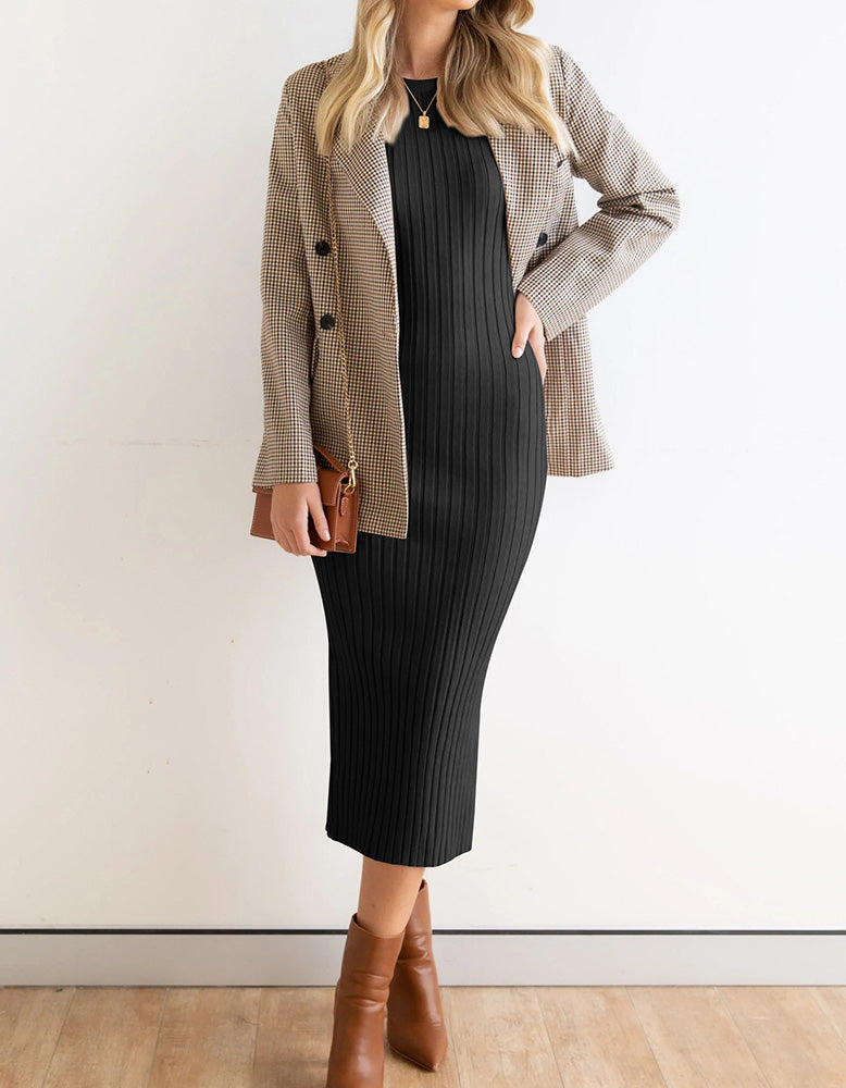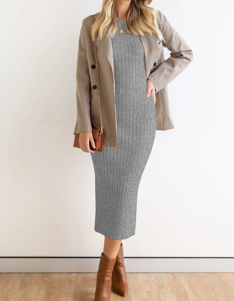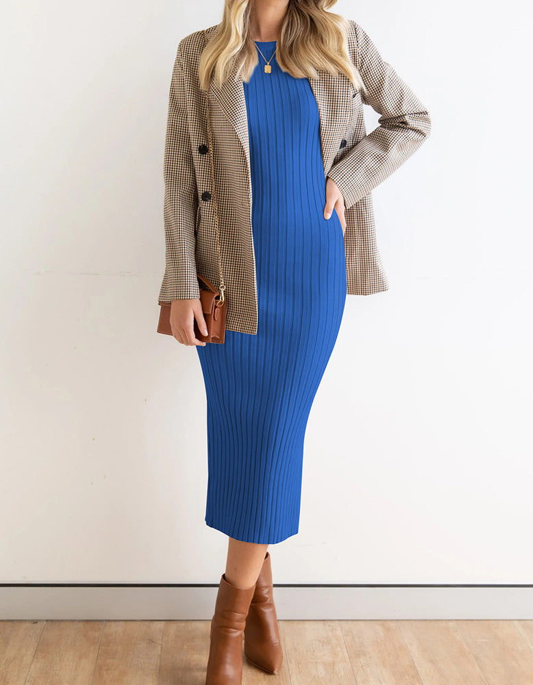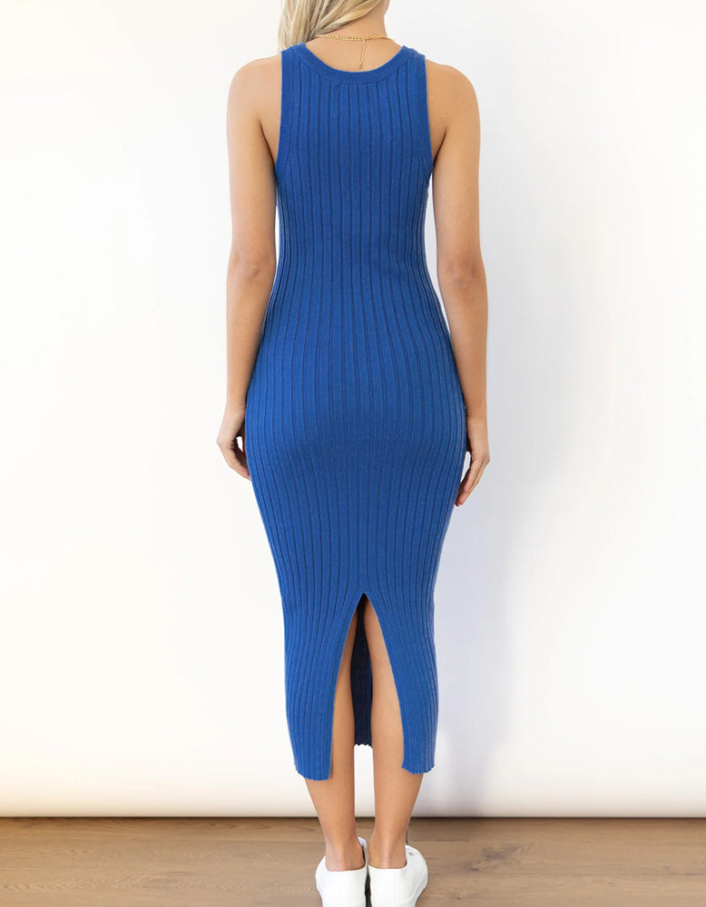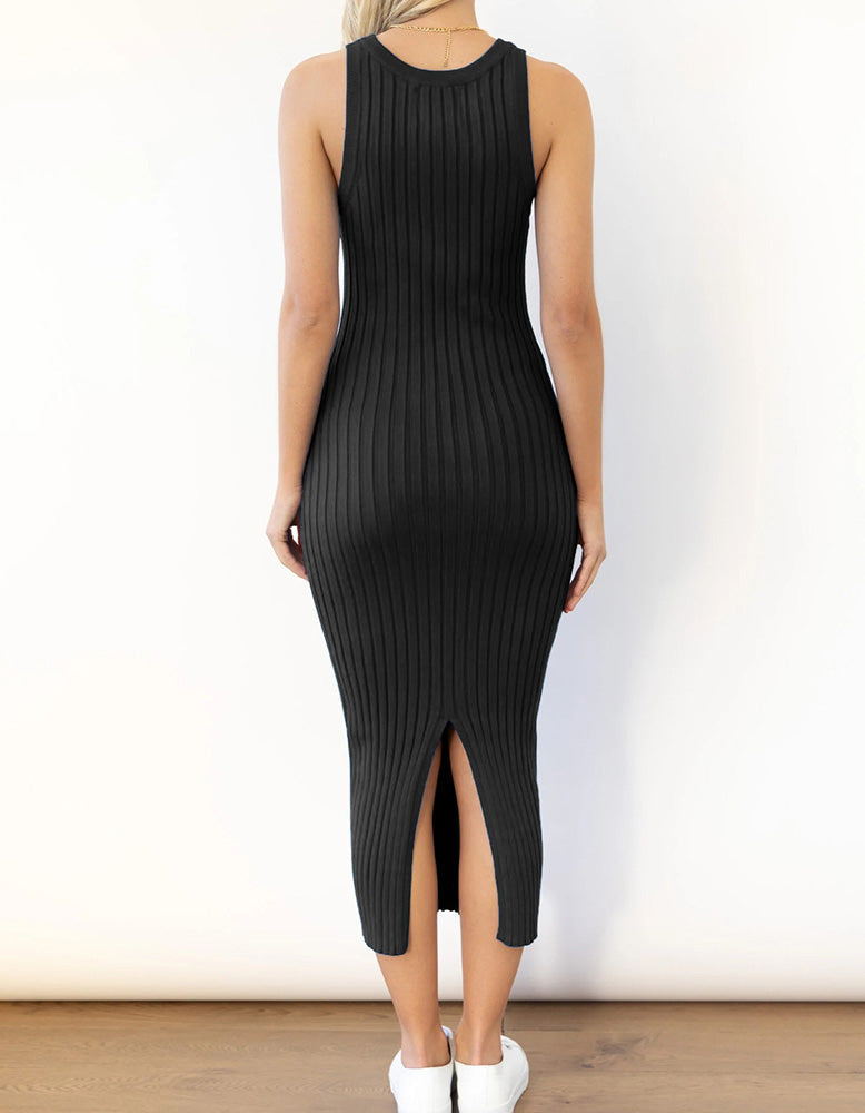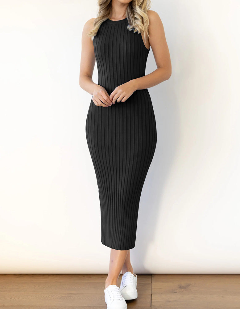 This Plain Sleeveless Round Neck Long Rib Knit Bodycon Dress is perfect for any occasion. With its flattering high waist. rib knit fabric and pencil hem. this elegant and sophisticated style features slits for increased mobility. a round neckline and sleeveless design. Available in shades of White.Gray.Blue.Black and Almond. this fit dress is made from a blend of Viscose and Polyester for added comfort.