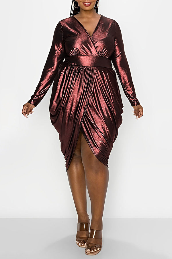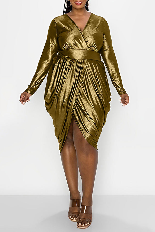 We're glad you've clicked on our new irregular dress as we're really into its stylish vibes! The v neck and high waist cut make this a great choice for any stylish girl.