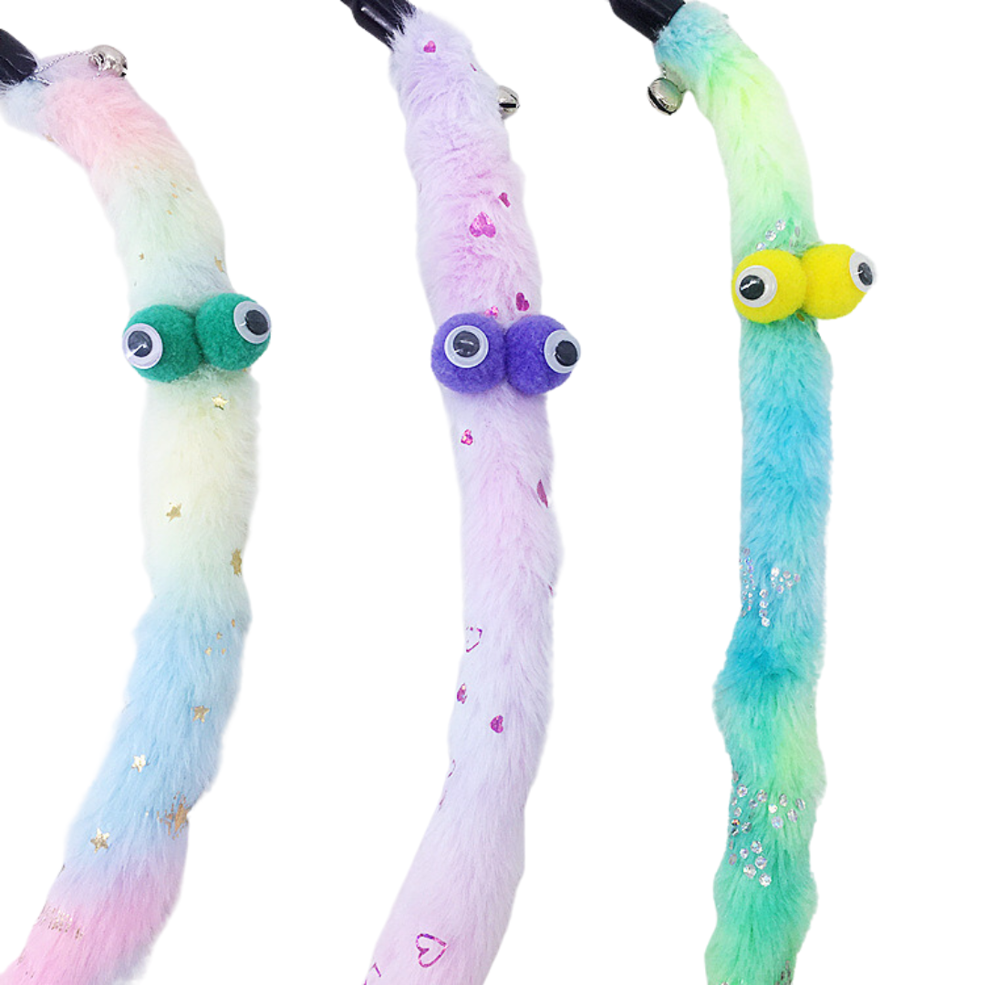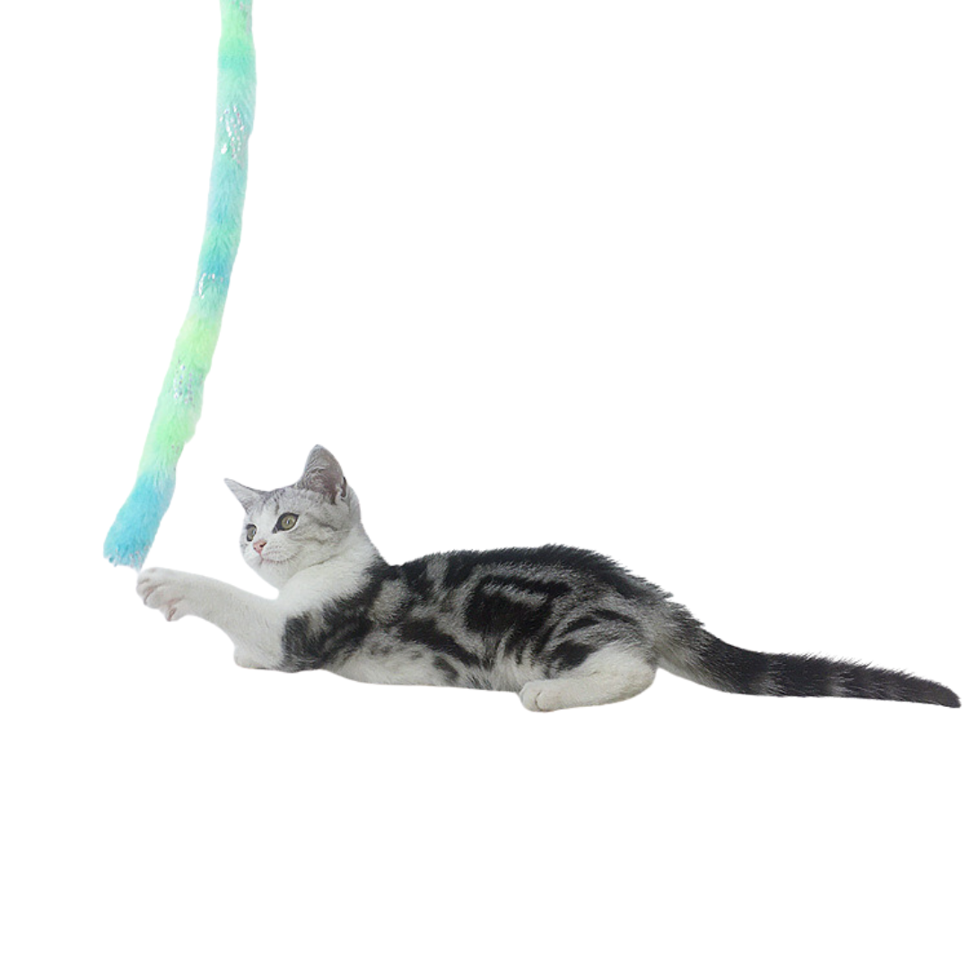 Introduce your cat to endless hours of fun and exercise with our Plush Cat Teaser Wand Toys. Made with soft. plush material and equipped with a bell. these toys will keep your feline companion entertained for hours on end. Perfect for stimulating their natural hunting instincts and promoting physical and mental well-being.