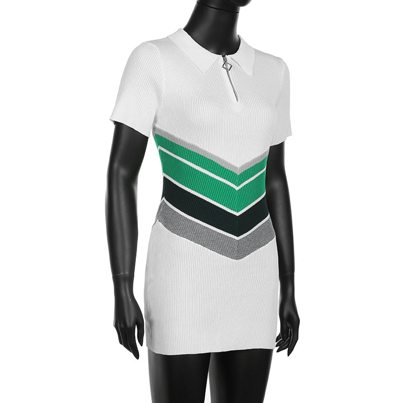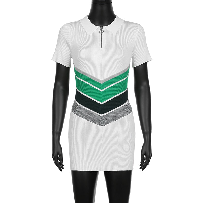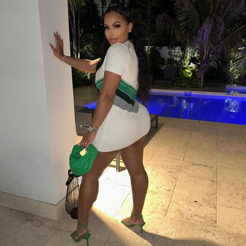 We are obsessing over this Polo Girl Mini Collar Dress for your new season wardrobe. Featuring a white ribbed material with a collar design and zipper detail. what's not to love? Team with strappy heels. and a matching bag to complete the look.