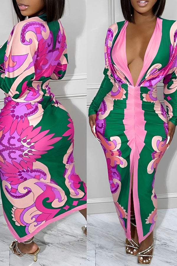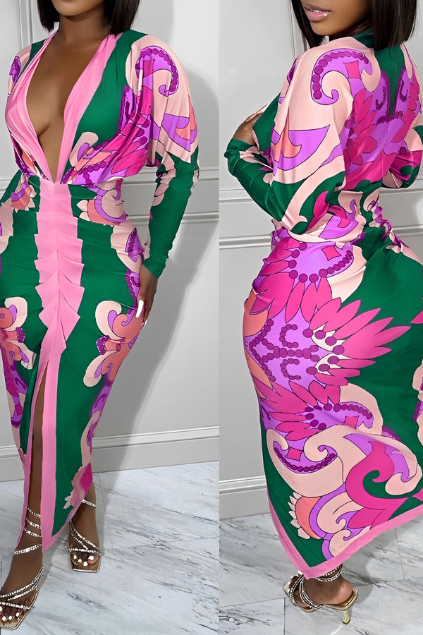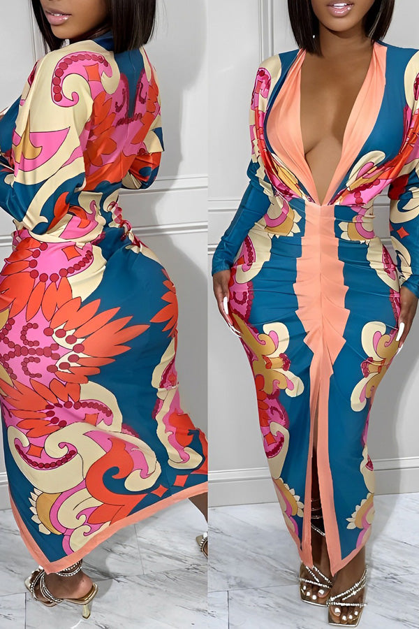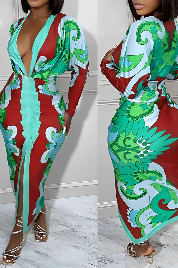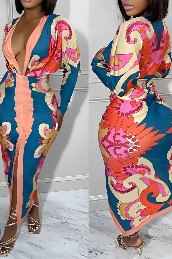 Stay on trend this season in our new chic. deep v neck dress. We especially love the graphic print fabric and think this piece will be a new favorite in your closet!