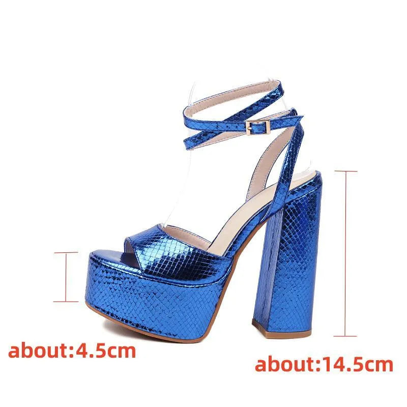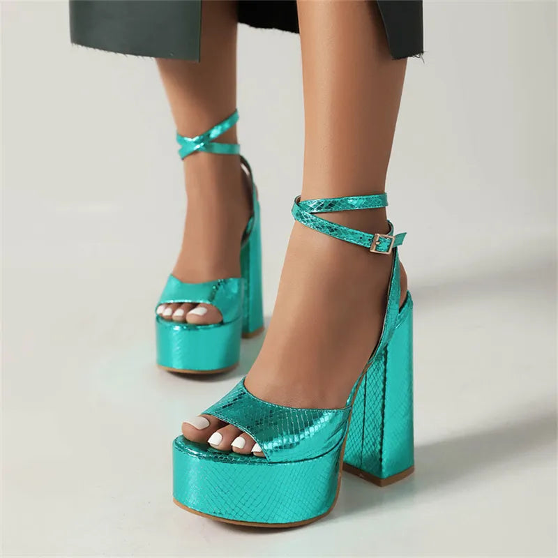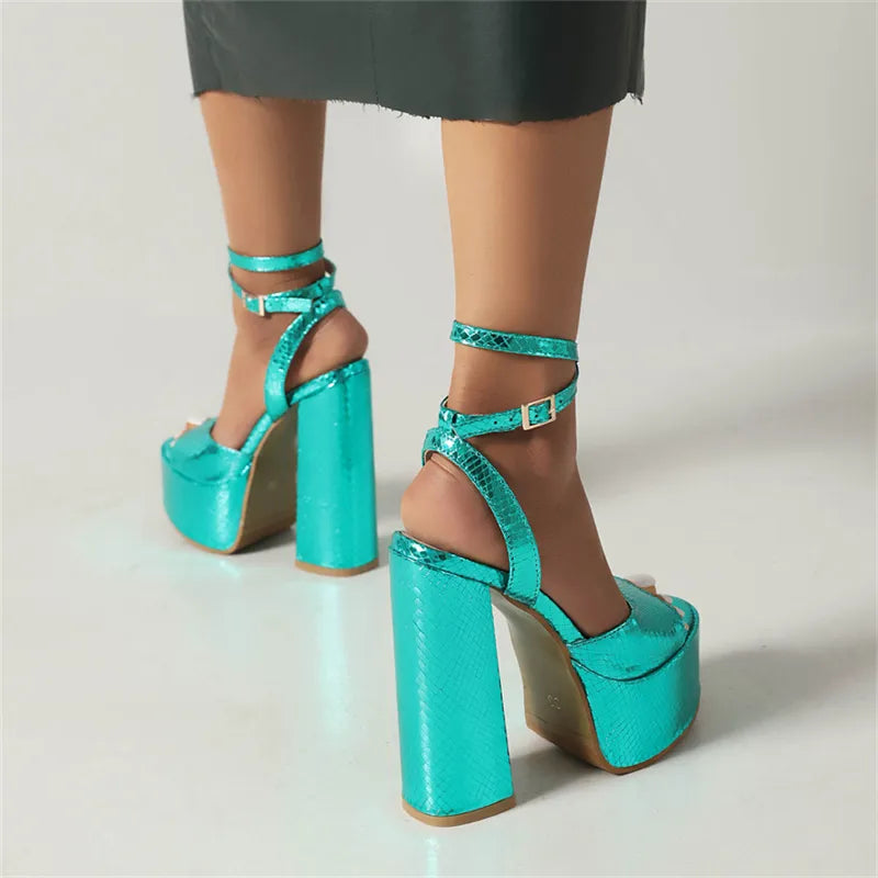 Lengthen your legs in style with these Public Desire Platform Block Heels. Featuring a shiny textured PU material with a platform design. ankle strap. and a block heel style. we are obsessed. Style these heels with your weekend worthy outfit.