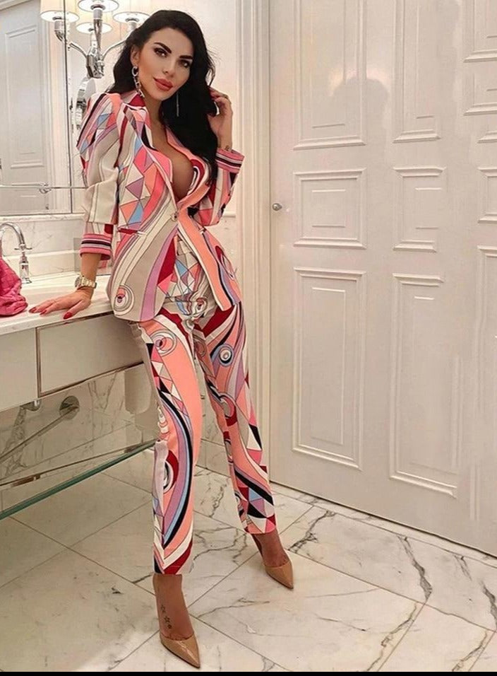 This Rachel Blazer & Pants Set is designed for a sophisticated yet effortless look. Cut from a lightweight fabric. the set features a flattering blazer and slim-fit pants with clean lines for a professional look. The set is perfect for work or special occasions.