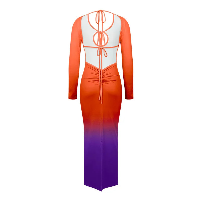 The Raven Gradient Maxi Dress offers a balance of elegance and sophistication. Its timeless design exudes class and sophistication. making it the perfect choice for any formal occasion. With its gradient pattern. this dress is sure to make a statement. while also providing comfort and style. Elevate your wardrobe with this must-have piece.