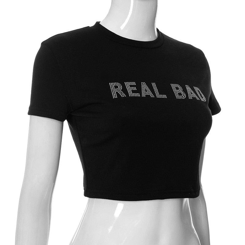 Level up your basics collection with this Real Bad Cropped Top. This crop top will instantly elevate your everyday look and beyond. Made from a soft cotton material with a cropped length design. what's not to love? Style effortlessly with box-fresh sneakers and simple accessories for a look that we can't stop crushing on.