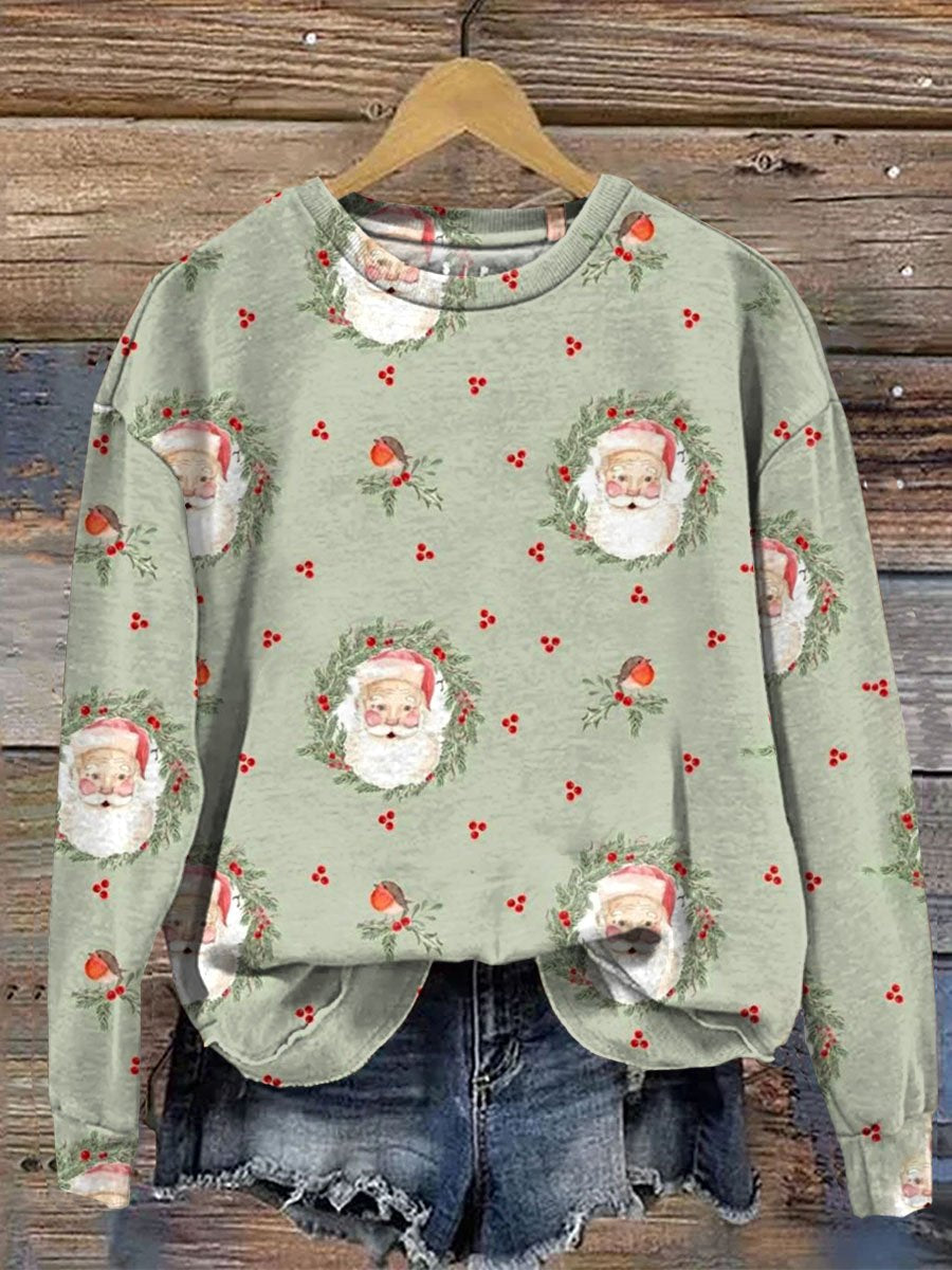 Retro Santa Christmas Art Print Casual Sweatshirt