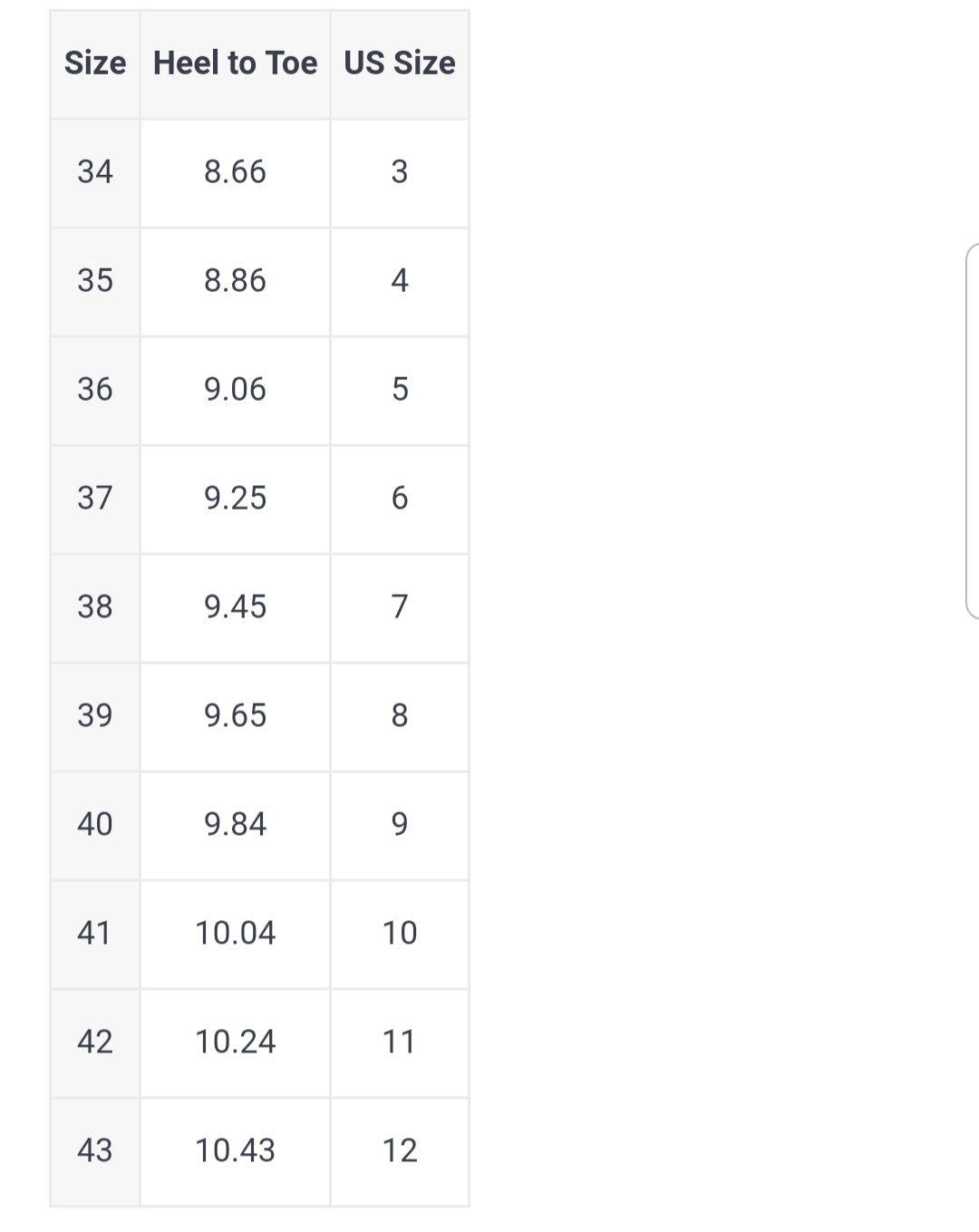 size 35=US size 4 = feet length 22.5CM