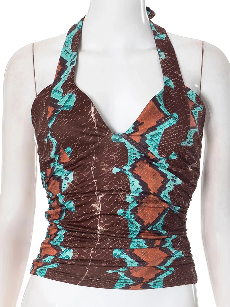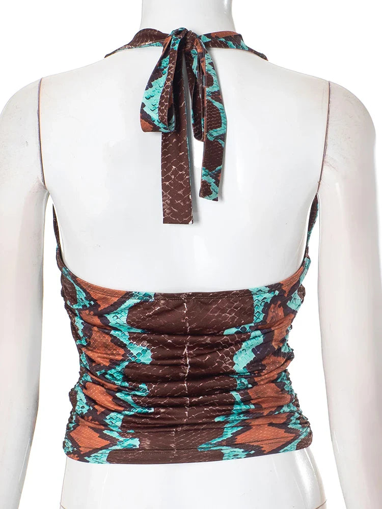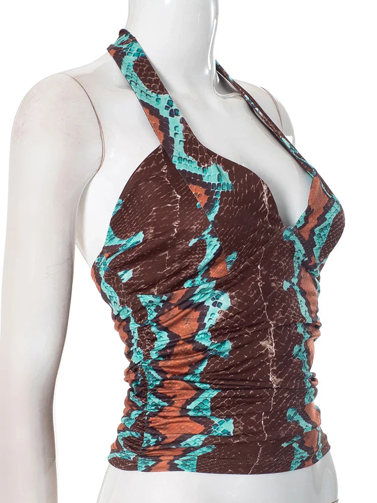 Print designs are key this season. offering an evolved take on after-dark dressing. This Rodeo Halter Top features an all over print design and a low neck style. This top makes it ideal for pairing with high waisted shorts �consider our Western Dream Fringe Knee High Heels for a considered. contemporary edge.
