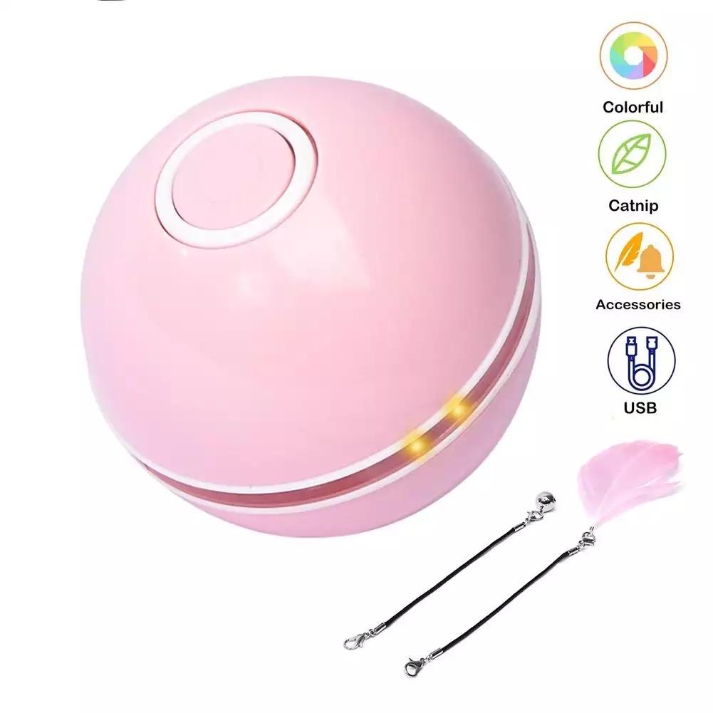 This interactive cat ball toy incorporates automatic direction changing capabilities and LED light to capture your cat's attention and stimulate their natural hunting instincts. With a simple press of a button. the ball will self-rotate 360 degrees and emit a red light to keep your pet entertained. Thanks to its spherical shape and self-balancing system. the ball will continue to change direction on its own. providing endless indoor exercise for your cat. Additionally. the ball can be easily cleaned with water when the outer ball is securely fastened.