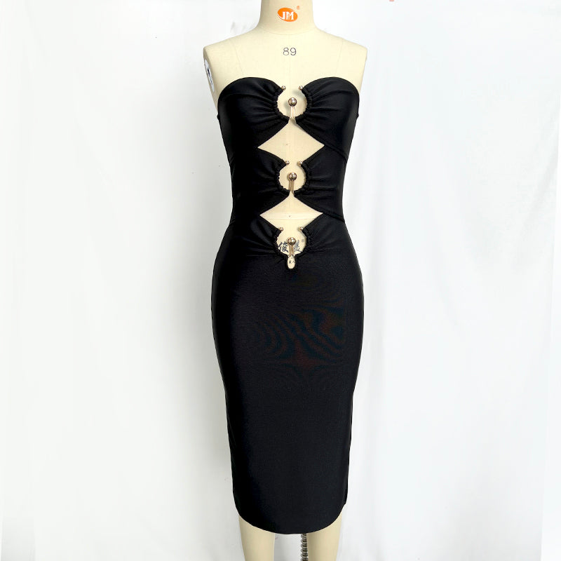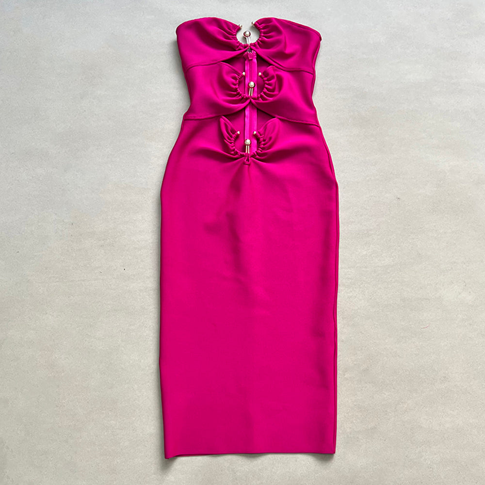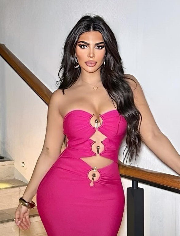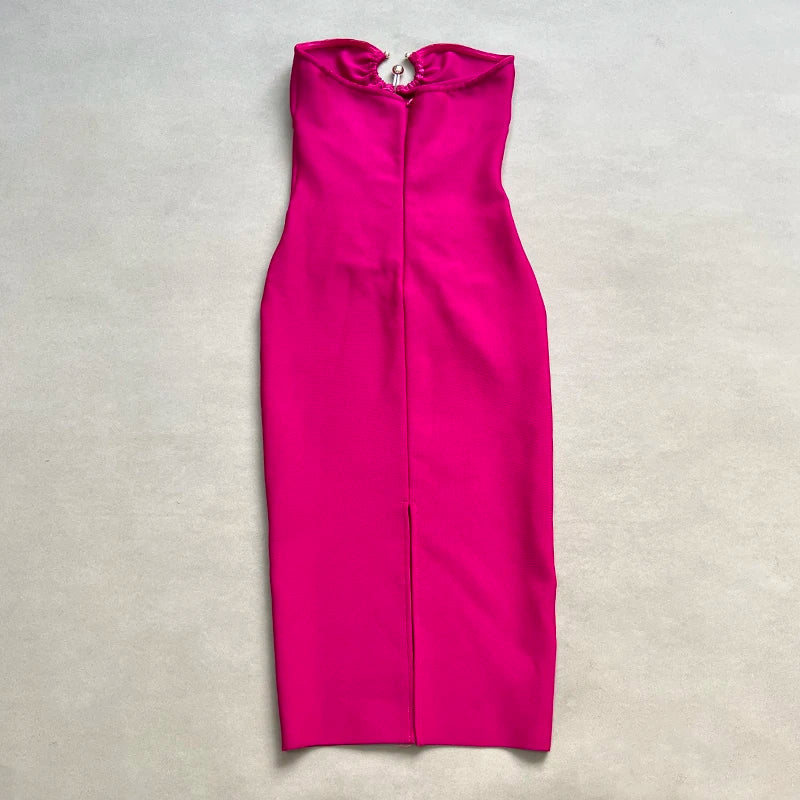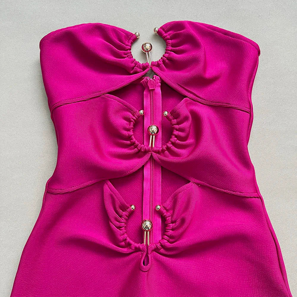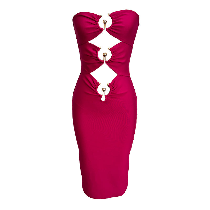Indulge in luxury with our Rose Red Cocktail Bandage Dress. This sophisticated dress features open cuts on the front. adding a touch of elegance to your look. Embrace your inner fashionista and stand out in style with this classy piece.