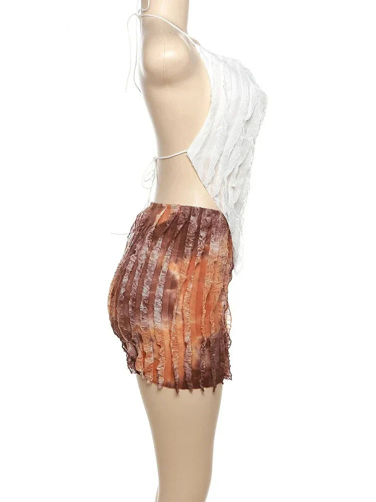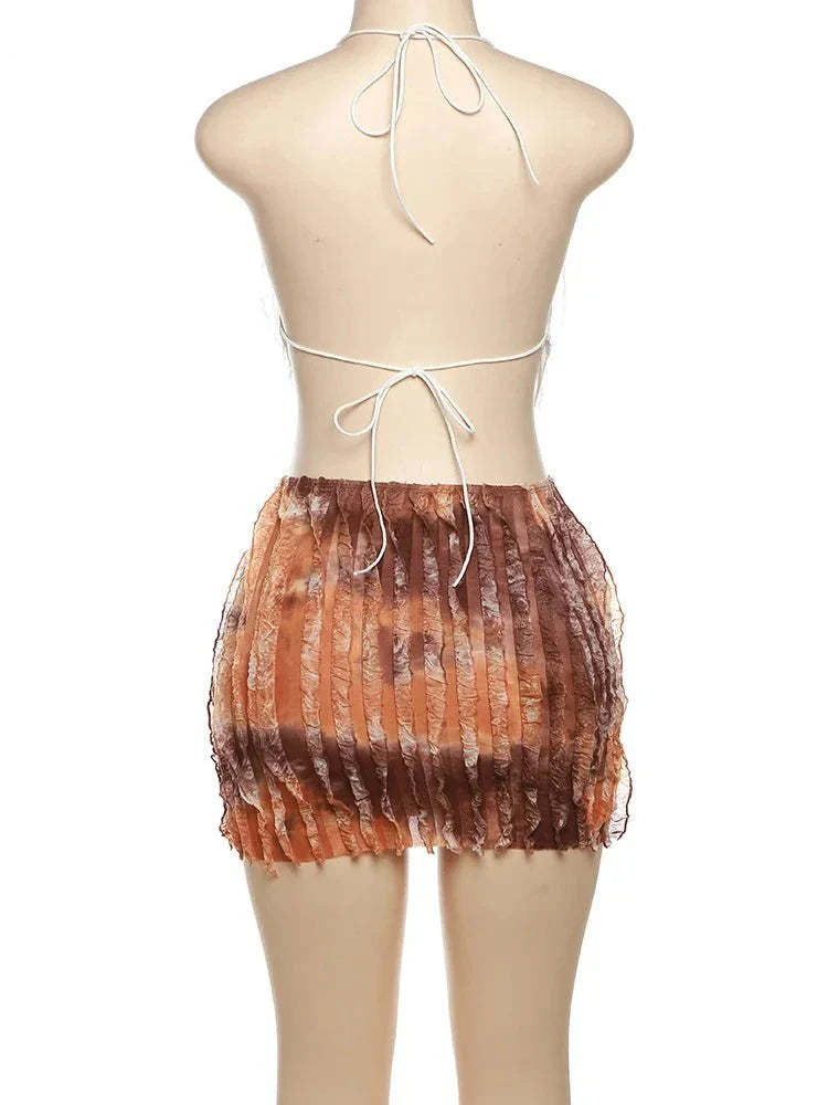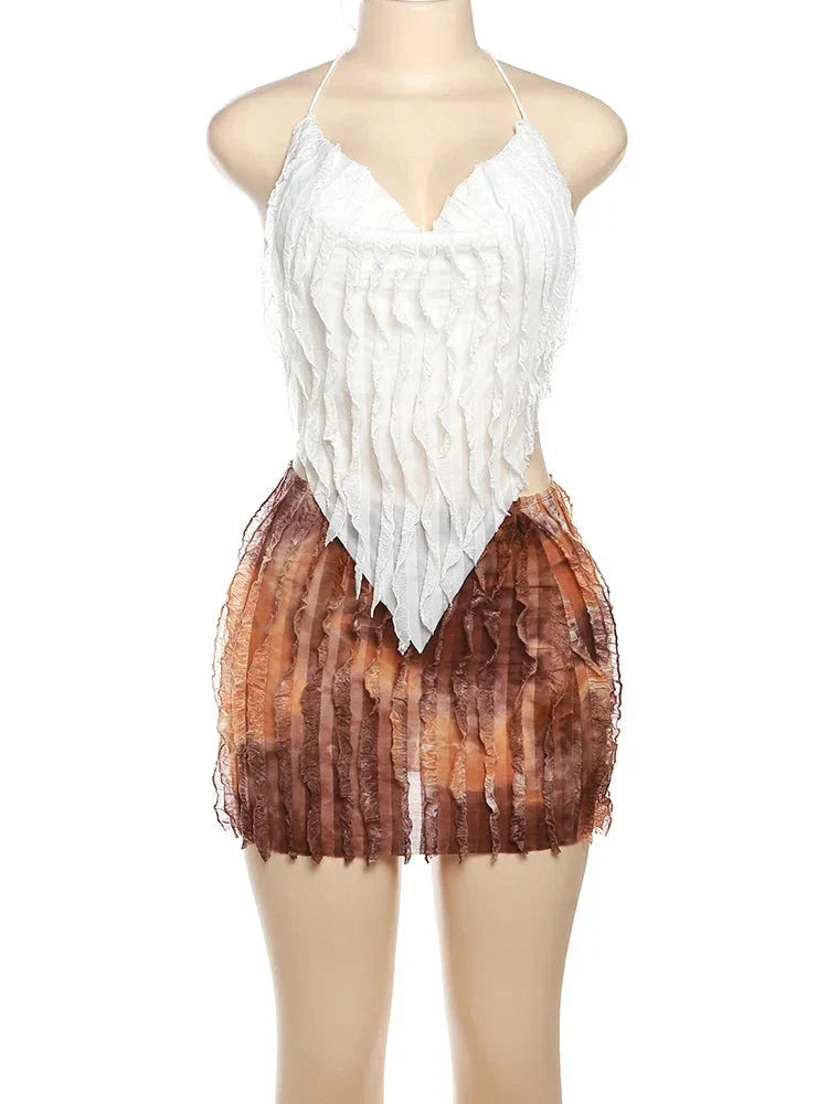 Add some prints to your wardrobe with this Safari Paradise Mini Skirt Two Piece Set. Featuring a white halter crop top and a brown mini printed skirt to match. Team this matching two piece set with strappy heels or sandals and complete the look with a mini bag. We can't get enough!
