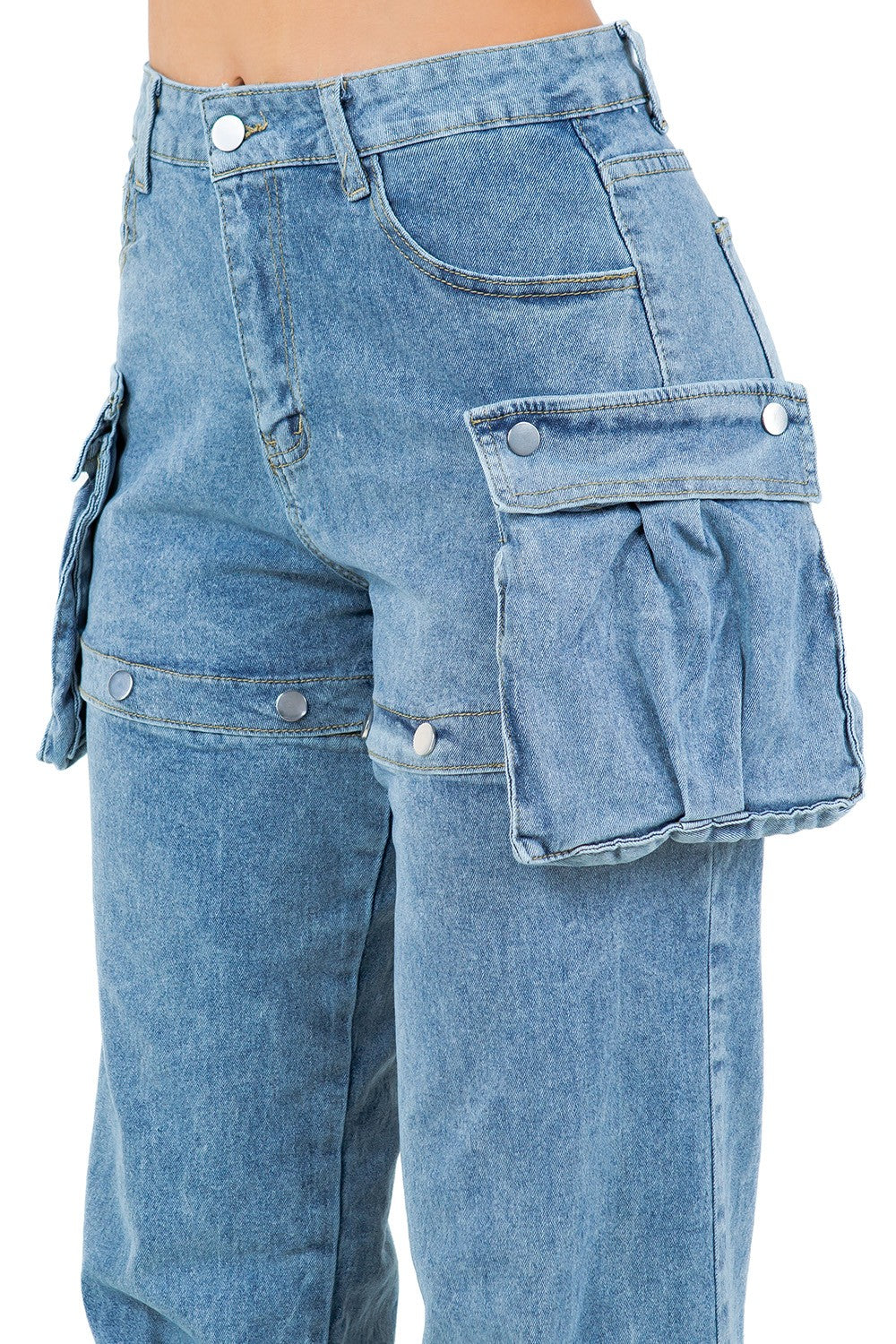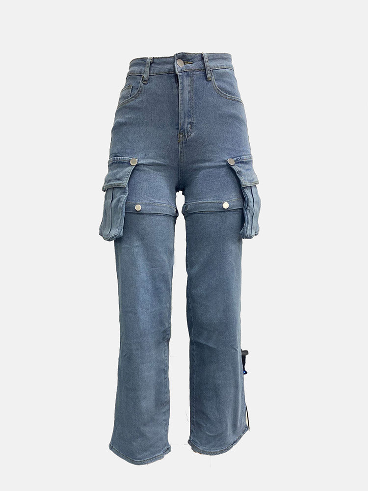 Elevate your style game with our Safari Wide Leg Cargo Jeans. Versatile and functional. these high-quality jeans feature a detachable design that easily transforms into either short jeans or long wide leg pants. allowing for endless styling possibilities. The perfect addition to your wardrobe for any fashion enthusiast.
