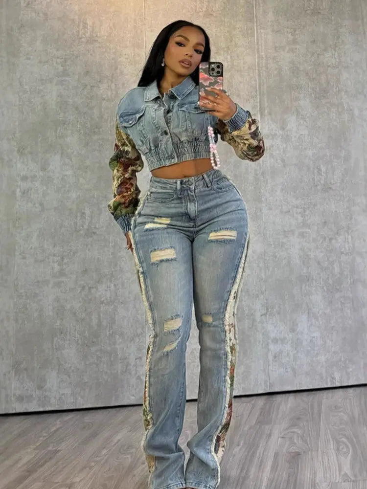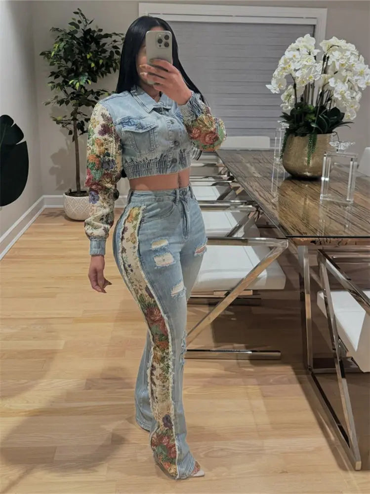 Upgrade your wardrobe with our stylish and versatile Sandra Denim Pants Set. Made with high-quality denim. this must-have set will elevate any outfit. Perfect for any occasion. our set offers both comfort and style. Don't miss out on this essential addition to your wardrobe.