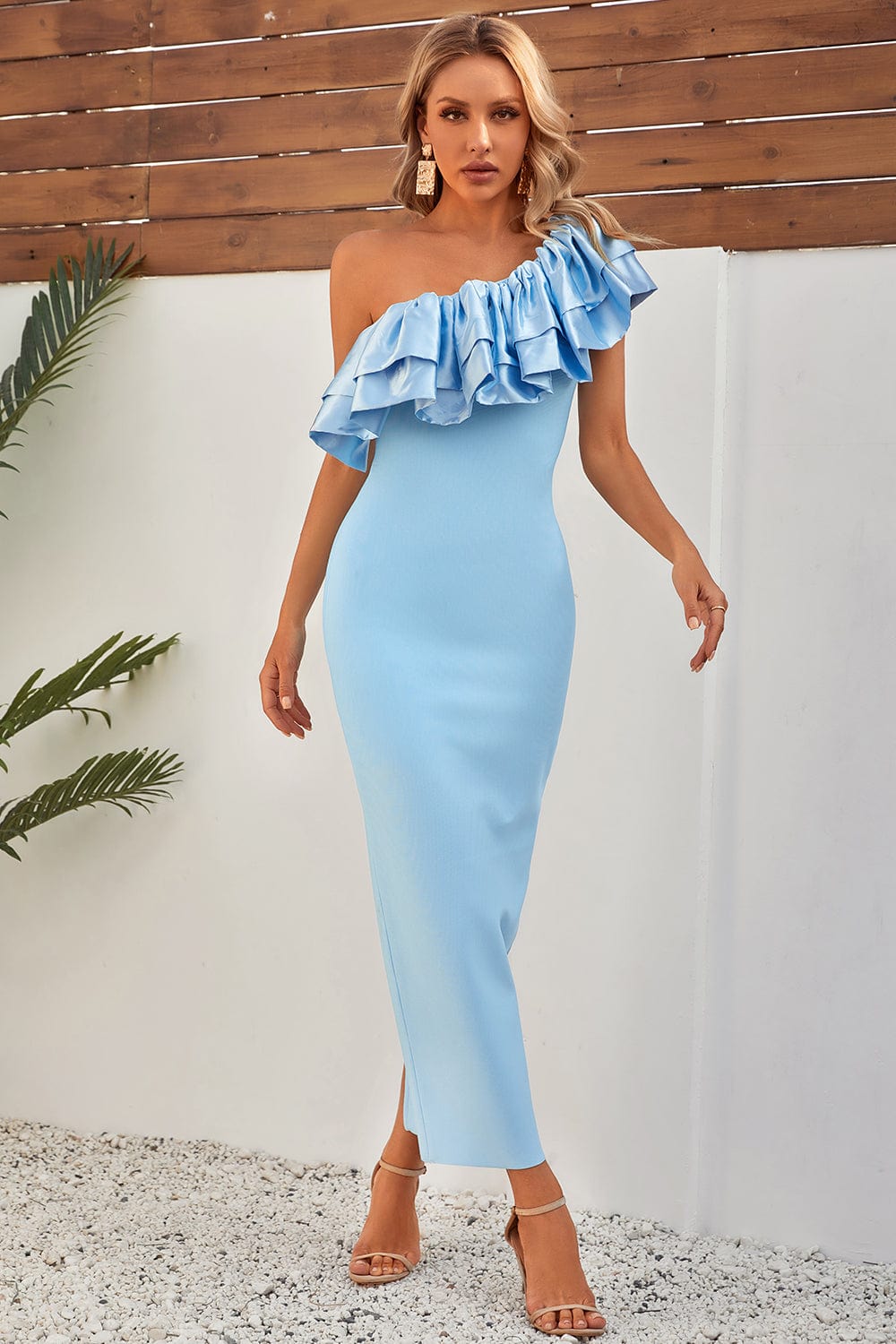 This Santorini Ruffle Blue Maxi Bandage Dress accentuates the beauty of a woman's figure. Its ruffled design and bold blue color create a unique look fit for a goddess. Look stunning and make a statement with this gorgeous maxi bandage dress!
