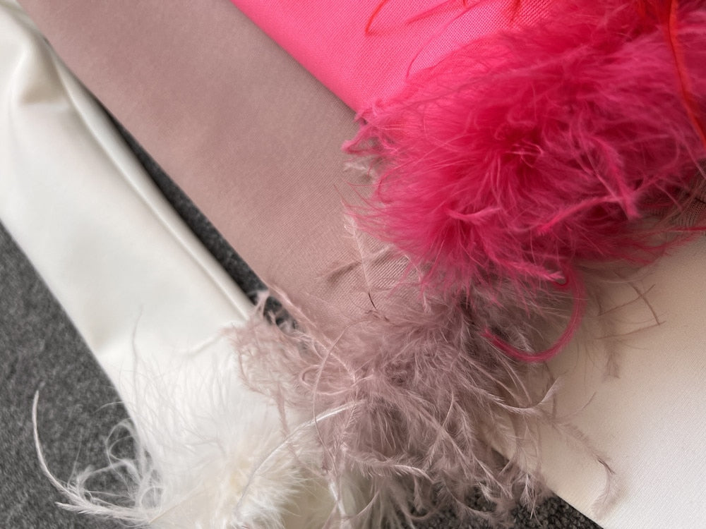 Please treat this dress gently since it's adorned with feathers; the occasional shedding of a single feather is to be expected.
