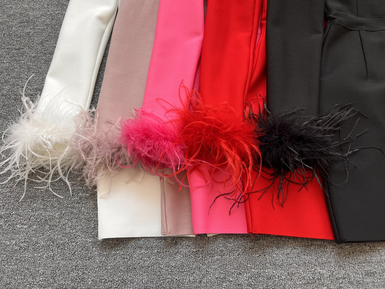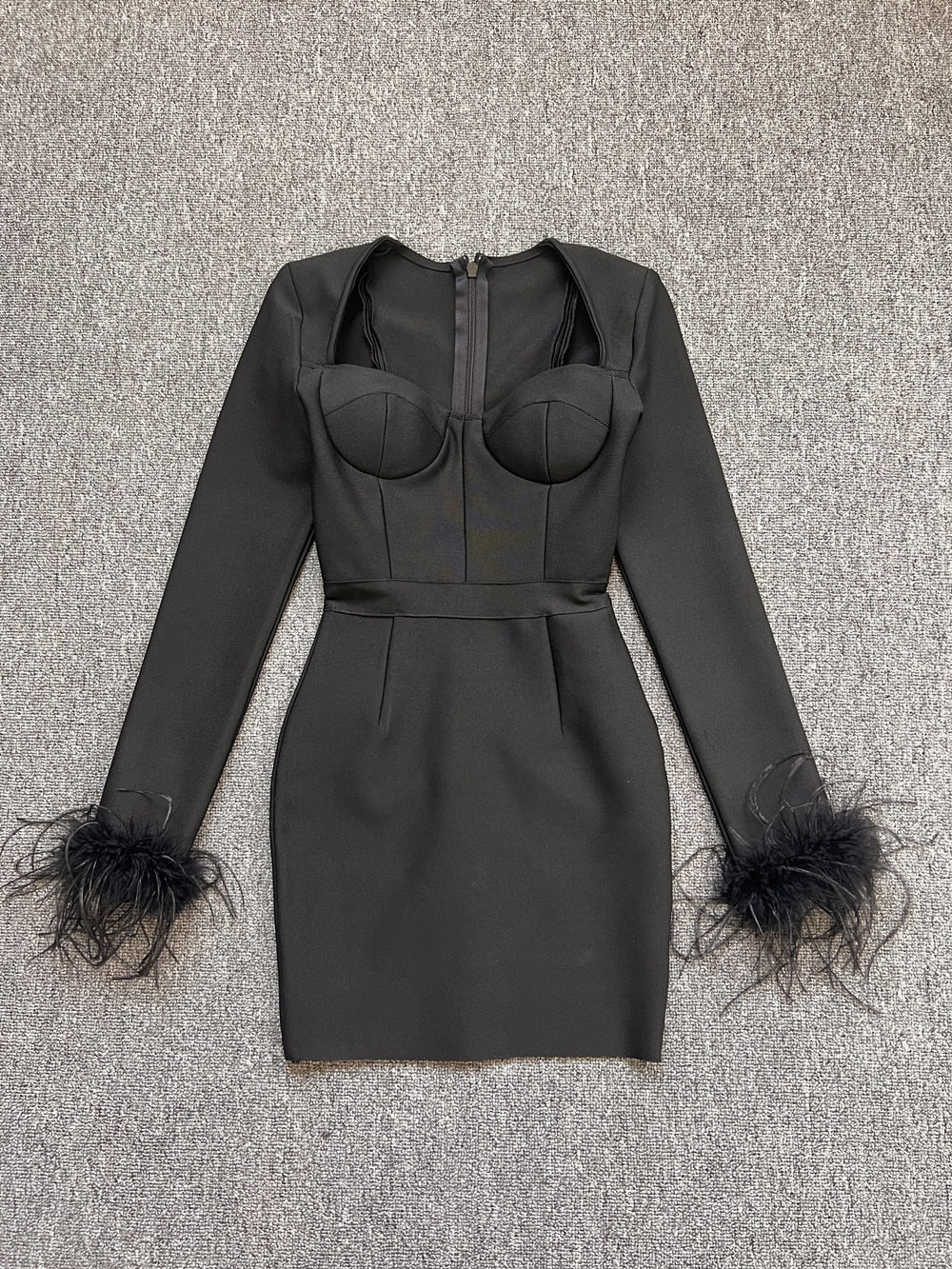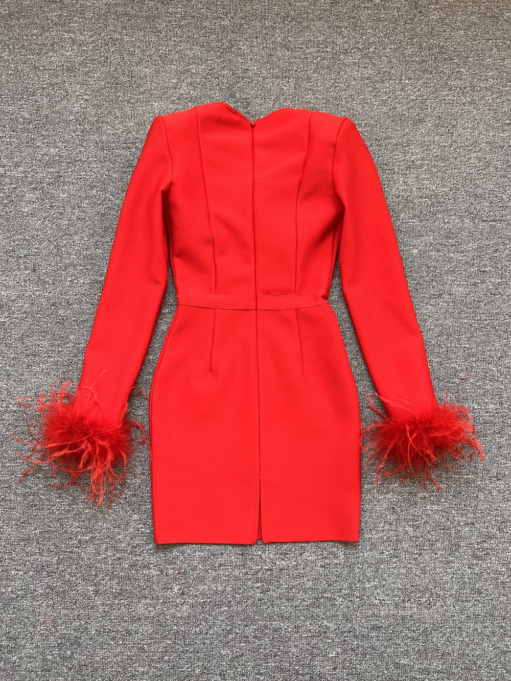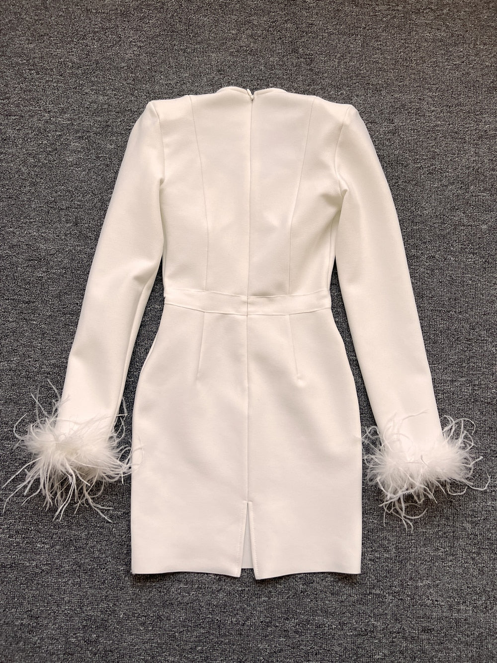 This Savy Feathers Bandage Dress is a perfect addition to any wardrobe. The classy design pairs perfectly with any style. making it ideal for any occasion. The comfortable fit makes it the perfect piece for any day or night outfit.