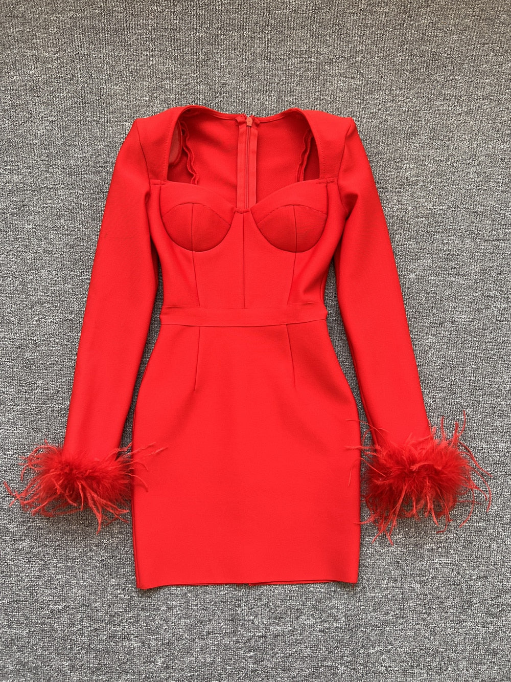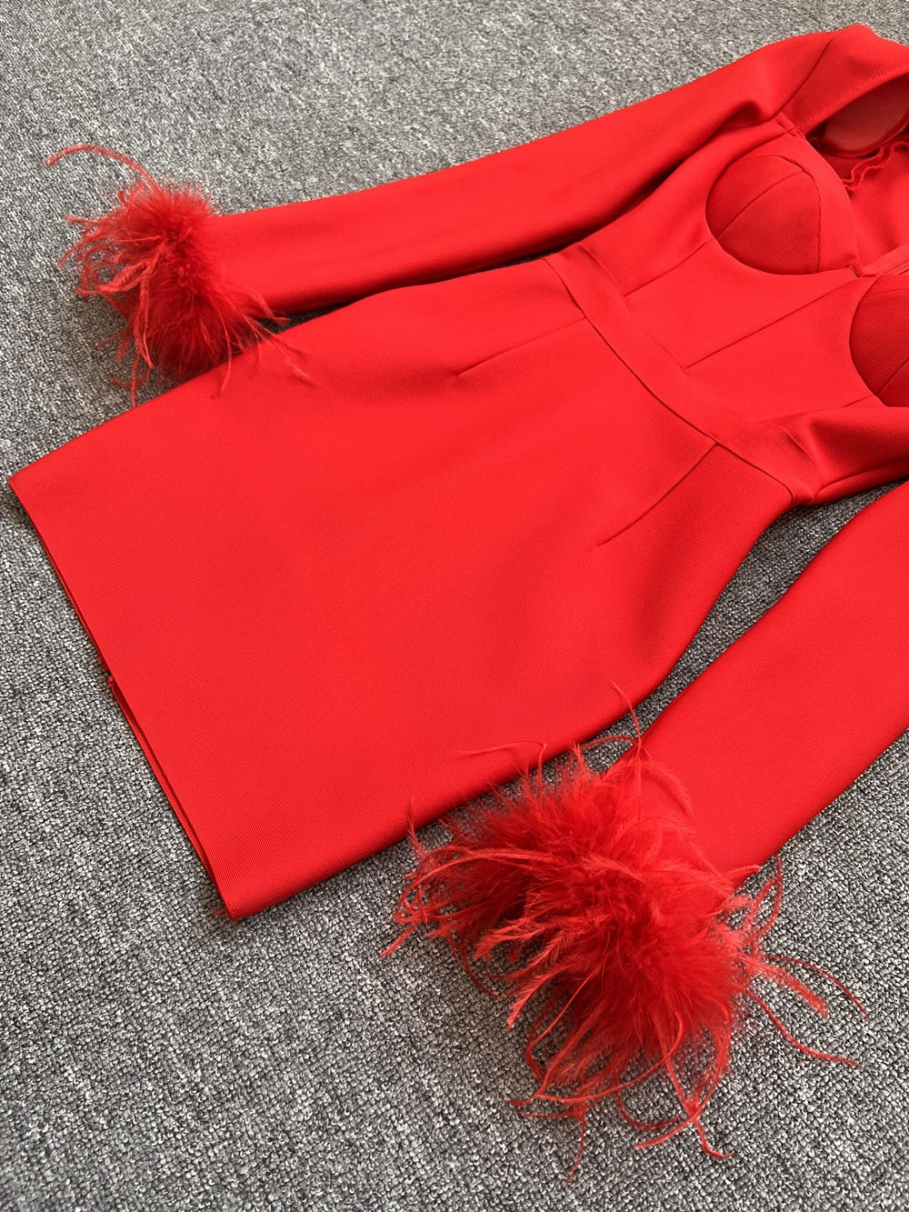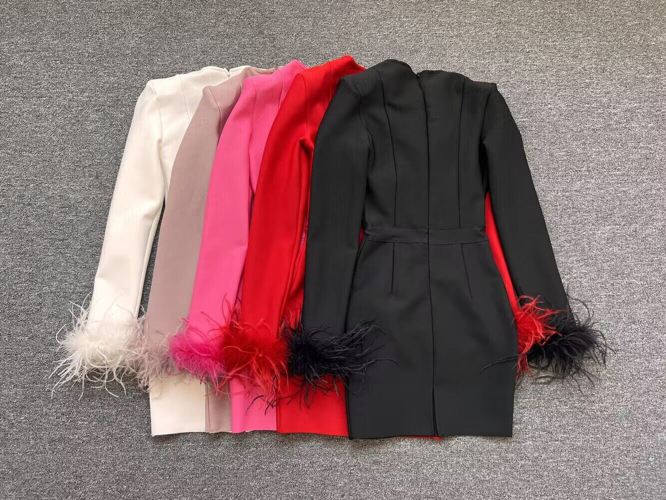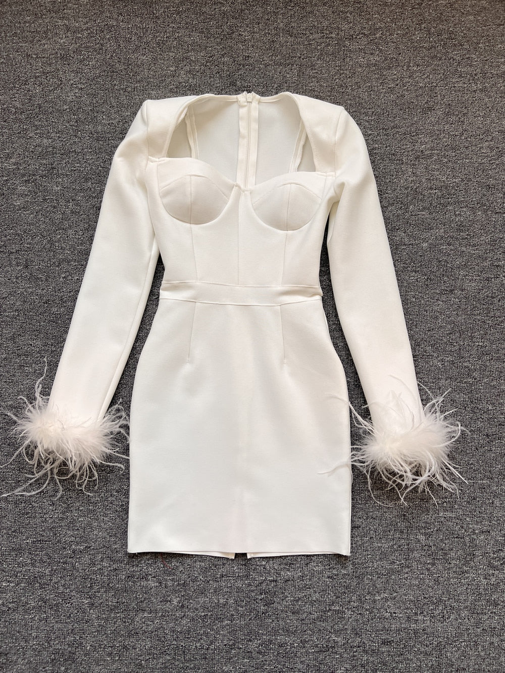 This Savy Feathers Bandage Dress is a perfect addition to any wardrobe. The classy design pairs perfectly with any style. making it ideal for any occasion. The comfortable fit makes it the perfect piece for any day or night outfit.
