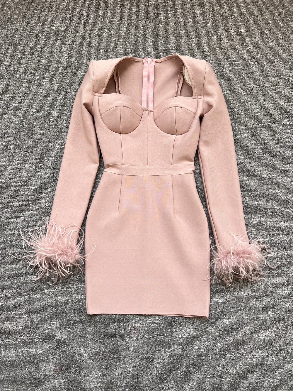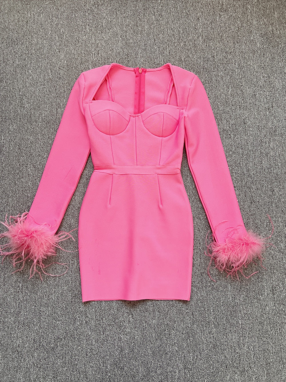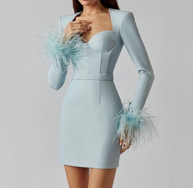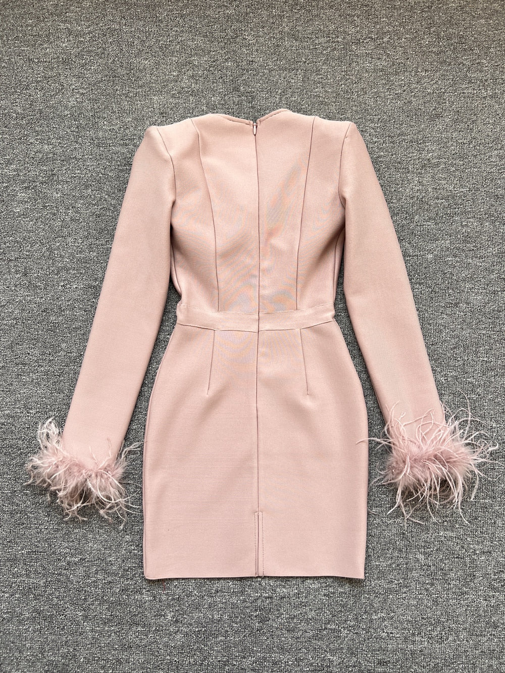 This Savy Feathers Bandage Dress is a perfect addition to any wardrobe. The classy design pairs perfectly with any style. making it ideal for any occasion. The comfortable fit makes it the perfect piece for any day or night outfit.
