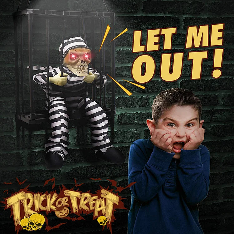 âœ?Scary Halloween Decoration - When your friends walk by and activate this Halloween decoration. they will be scared. The red-eyed prisoners chanted “Let me outâ€?as they poked their heads out of the cages.