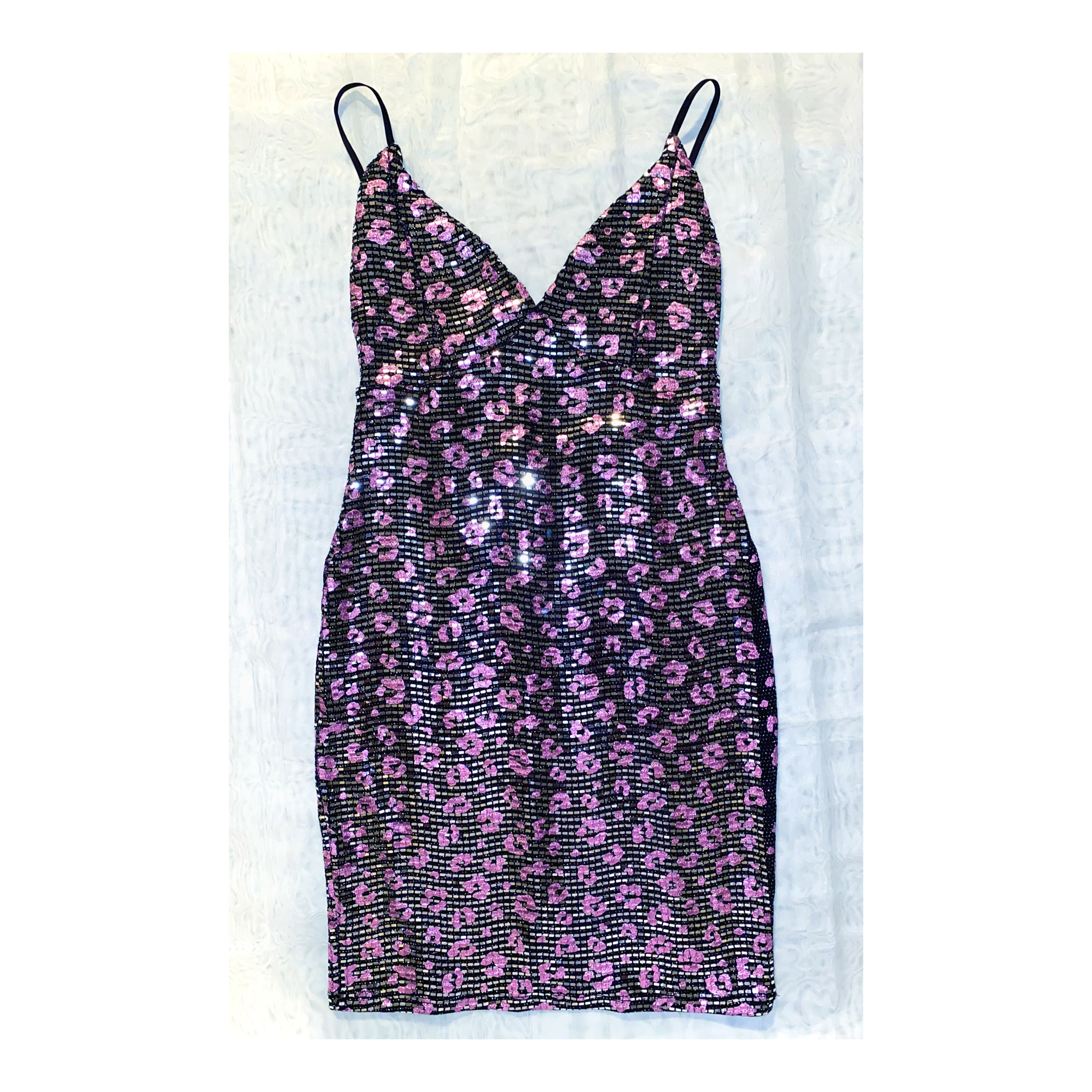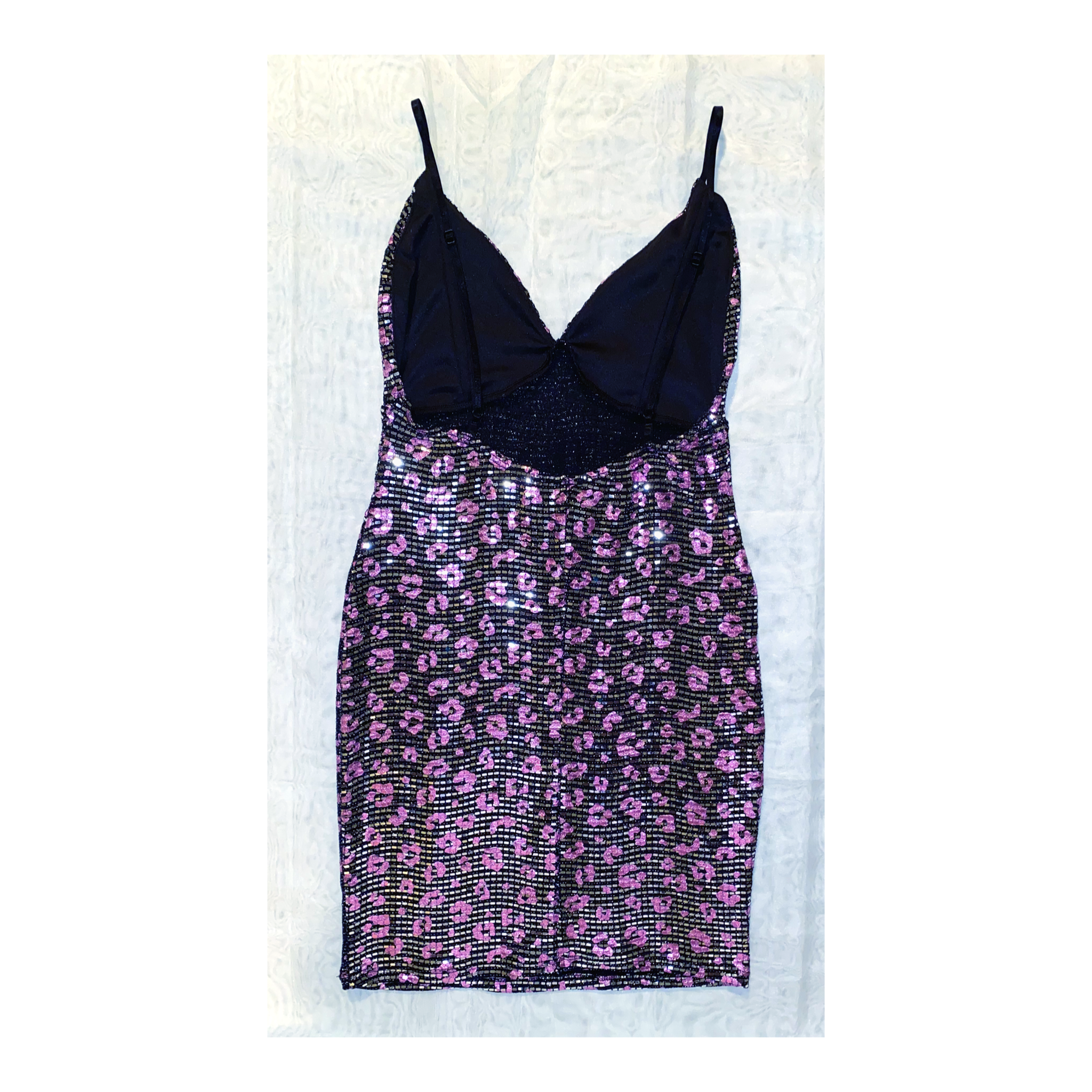 Sequin pink cheetah bodycon dress. This dress has slim adjustable straps with the back out. Super cute and hugs all the curves.