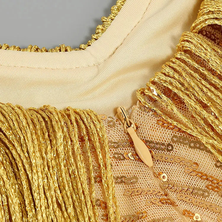 This striking sequin tassel mini dress is sure to turn heads with its timelessly classy design. Perfect for any special occasion. this beautiful piece is sure to make you feel like a million bucks.