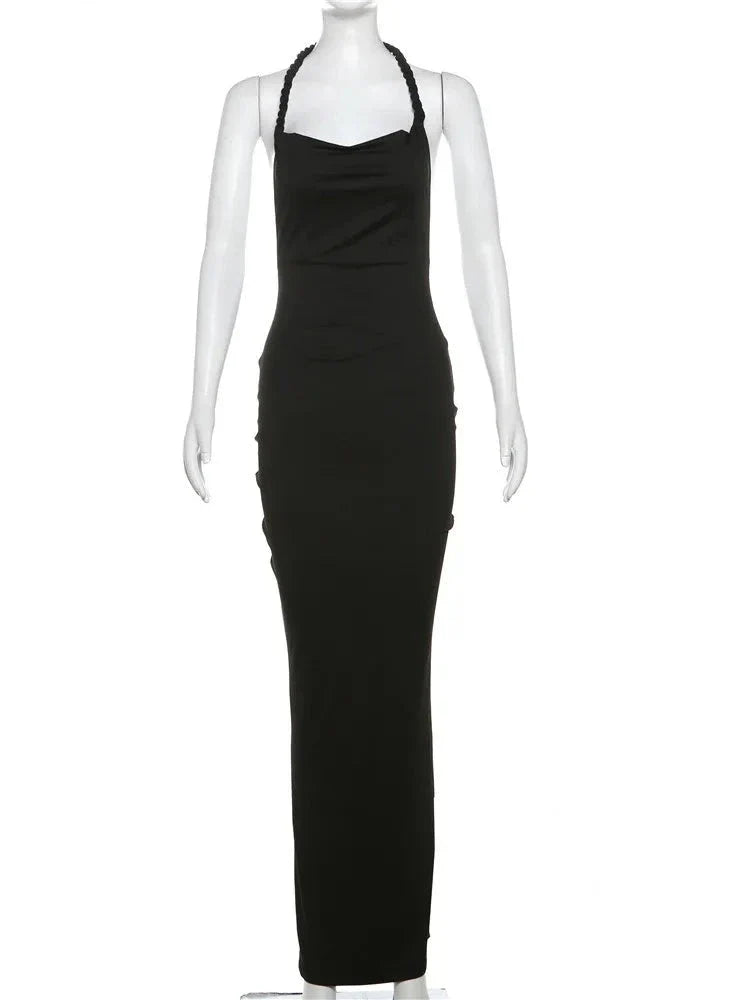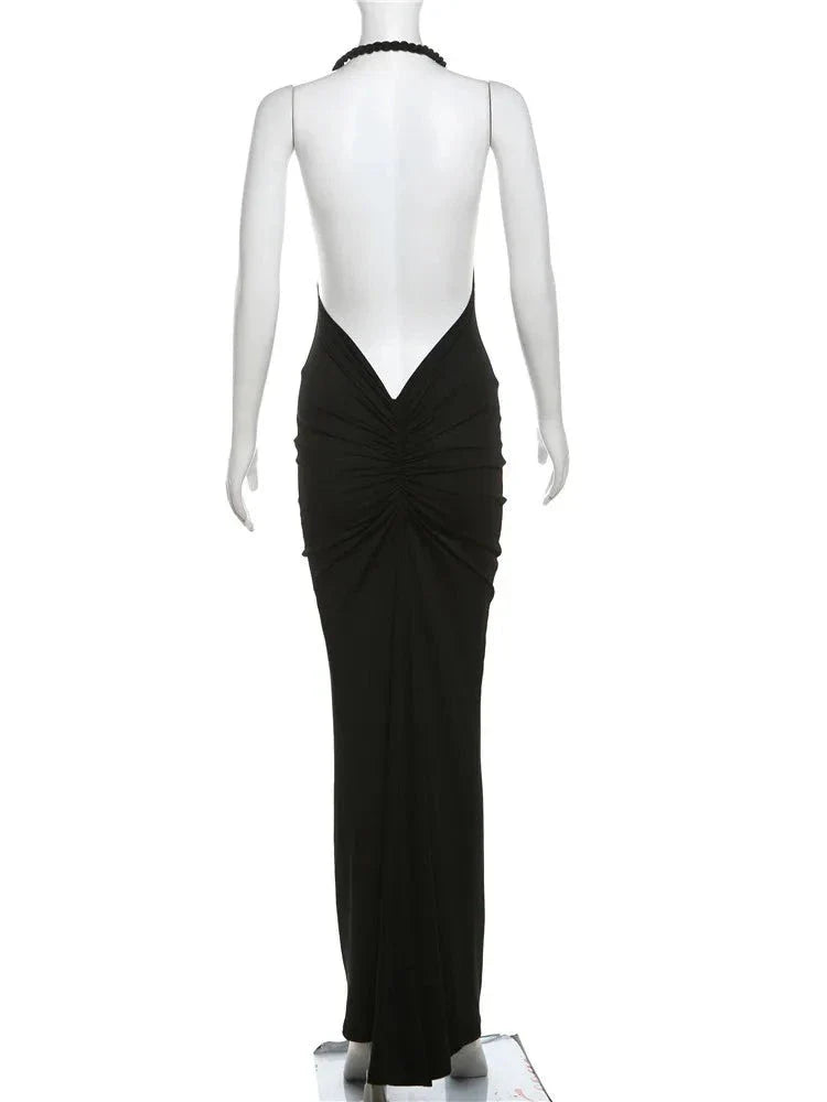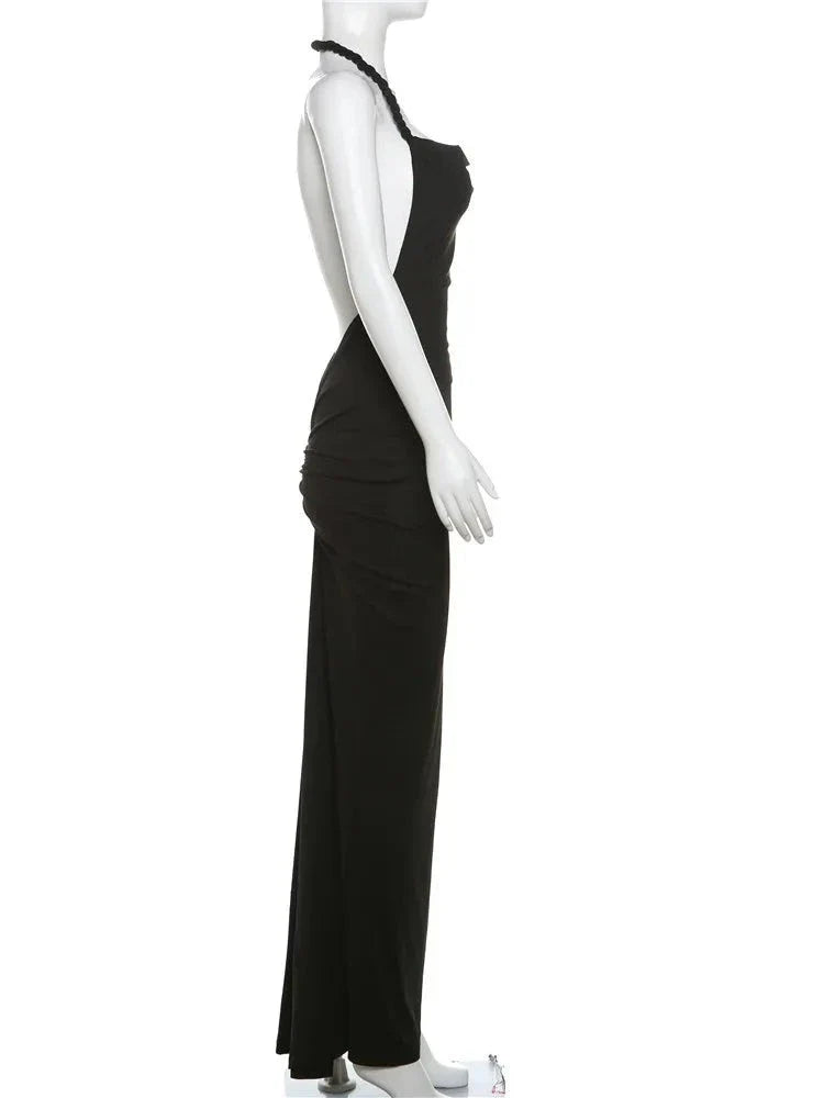 Be on trend this season with this Serenity Backless Maxi Dress. Brought to you in a PU material with a rope strap style. a cut-out back design with ruched detailing. and a maxi length. you will bring all the edge to your outfit of the night! This maxi dress is so versatile. and with the rope strap style this dress can be worn to your desire. Team with high heels and accessories to be the center of attention wherever you step foot this season.