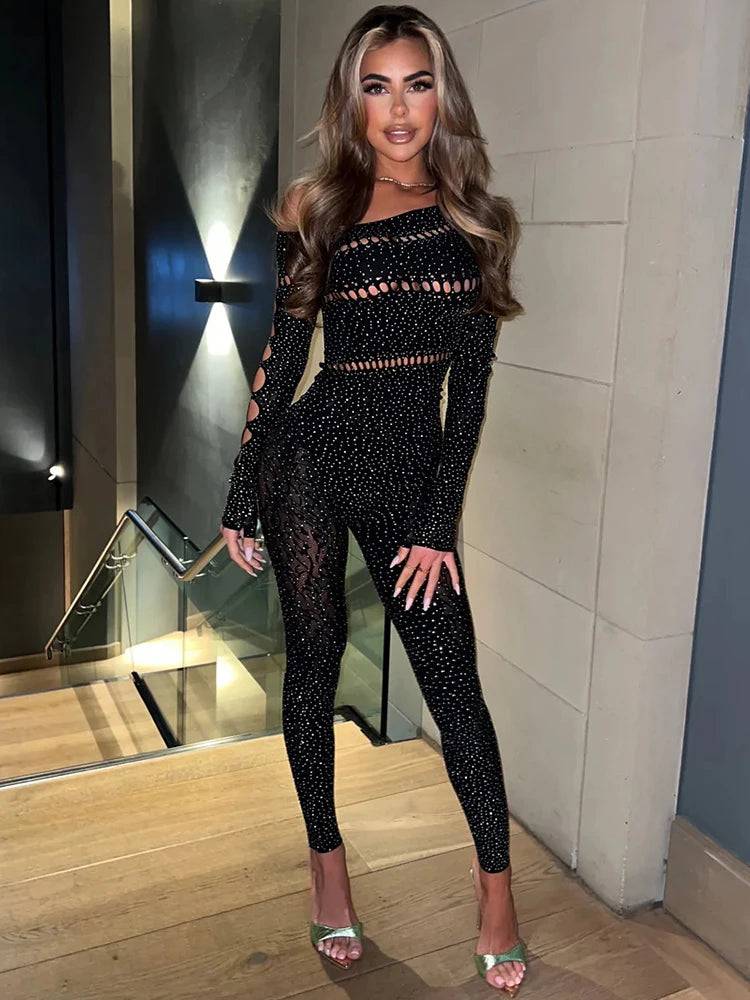 Elevate your style with the Shayna Rhinestone Jumpsuit. Designed with a must-have rhinestone detail. this jumpsuit will add a touch of glamour to any occasion. Perfect for making a statement. it's a must-have in your wardrobe.