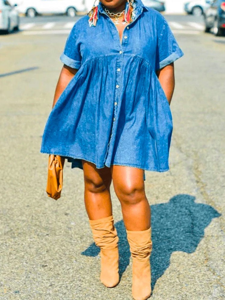The Sassiest dress in a baby doll silhouette that will have you feeling confident and cute. Wear loose and flowing with some sandals or sneakers. Or Dress her up with a wide belt at the waist and some heels or boots.