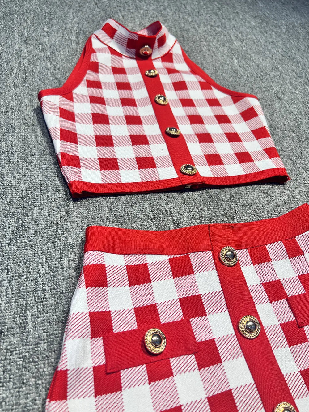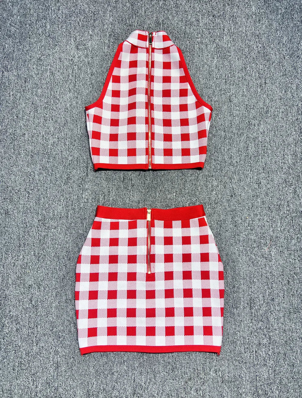 This She Plaid Bandage Skirt Set boasts high quality materials. ensuring long-lasting wear and a comfortable fit. Crafted with precision and attention to detail. it guarantees a chic and sophisticated look for any occasion. Elevate your wardrobe with this must-have set.