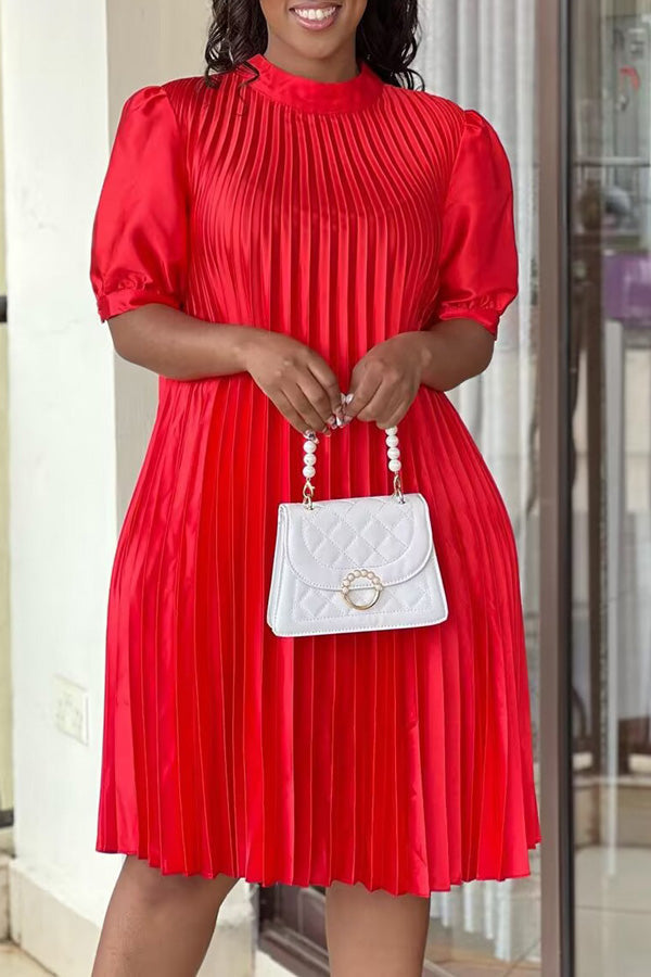 We're glad you've clicked on our new pleated dress as we're really into its simple vibes! The round neck and short sleeve cut make this a great choice for any stylish girl.